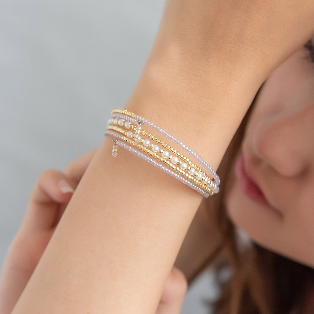 bl0632くすみパステルのビーズを使ったブレスレット。着脱簡単、外れにくいスパイラルバングル。