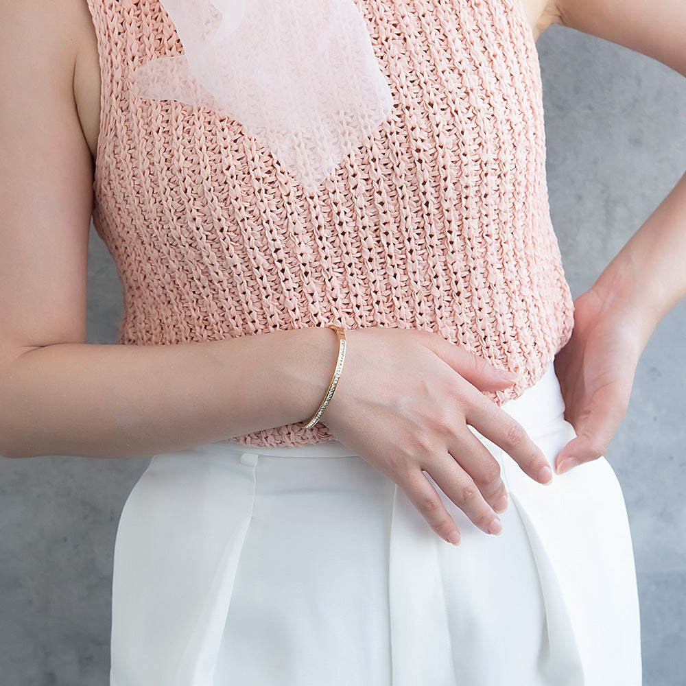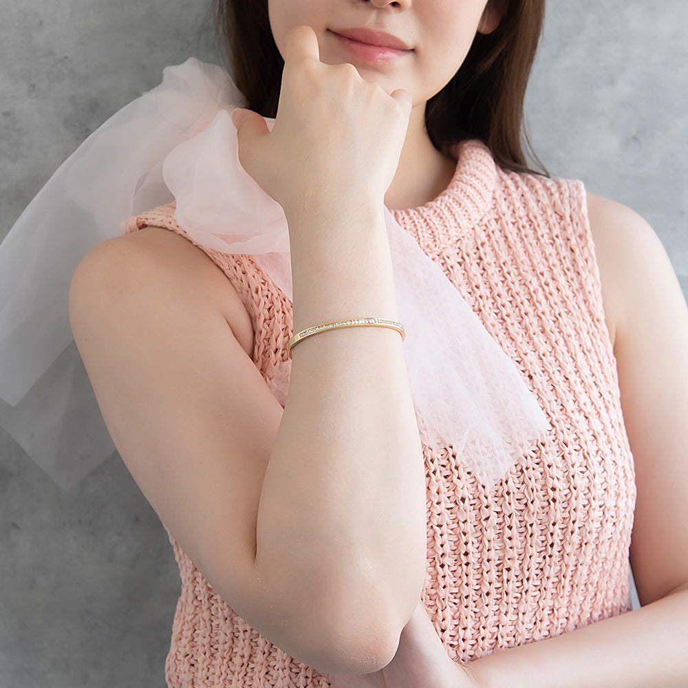 ブレスレット ステンレス スクエア ストーン ライン スリム バングル