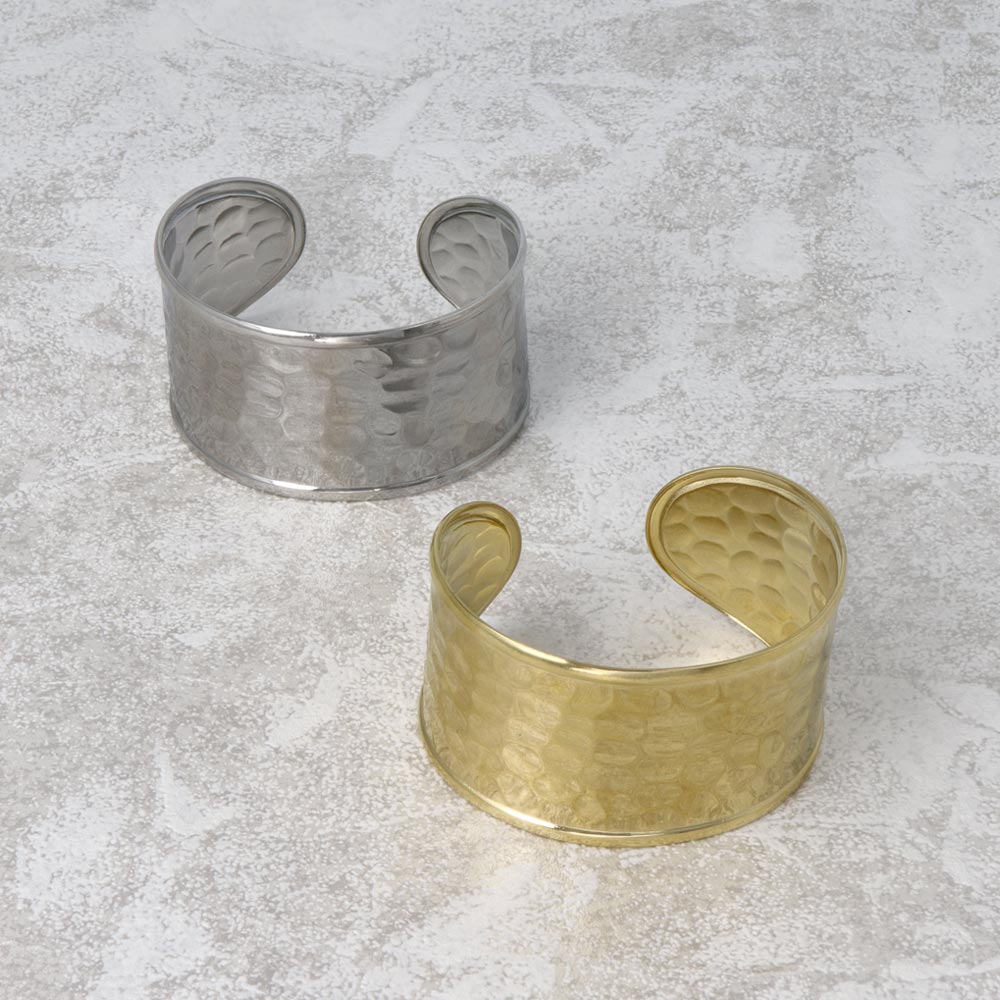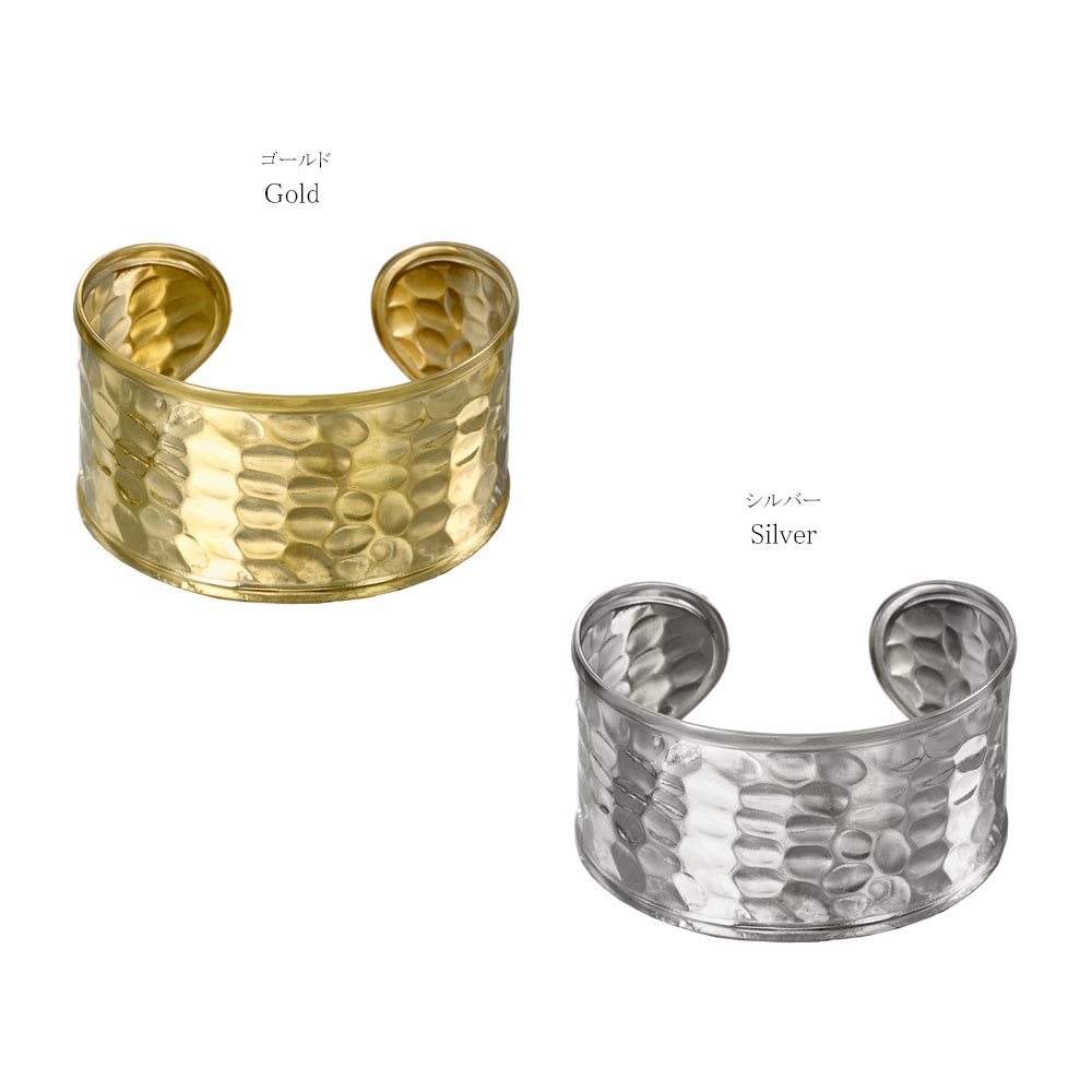 ブレスレット ステンレス 槌目模様 プレート ワイド ハーフバングル