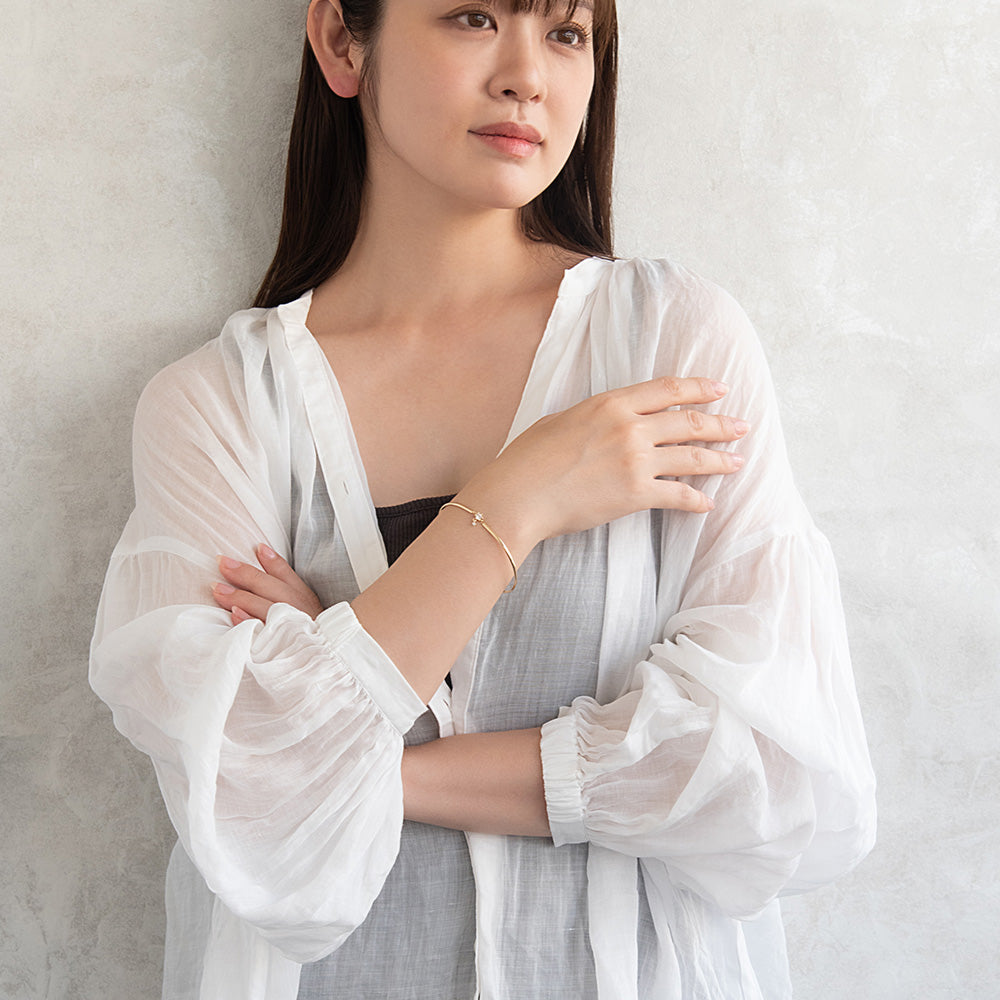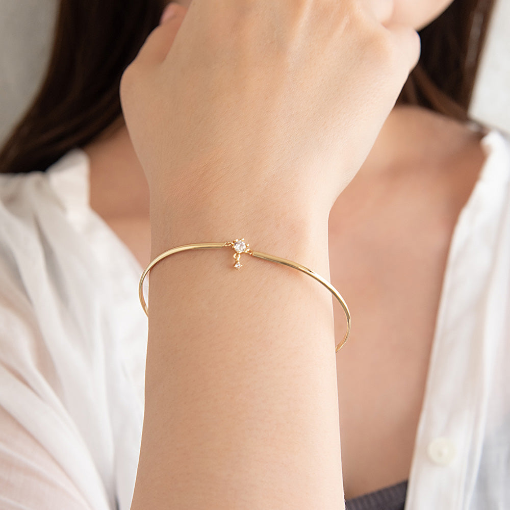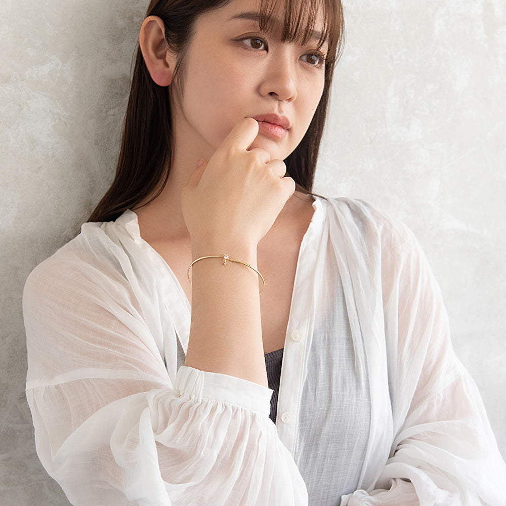 華奢で美しい、メタルのアーチラインに輝きに品格のあるキュービックジルコニアが煌めく、綺麗めデザイン。簡単装着、マグネット同士を近づけるだけ、磁石の留め具でラクにつけられるブレスレット。ひっかけるタイプの留め具が苦手な方や、ネイルアートをしている方にもおすすめです。機能性だけでなく、ファッションのポイントになるデザインも◎