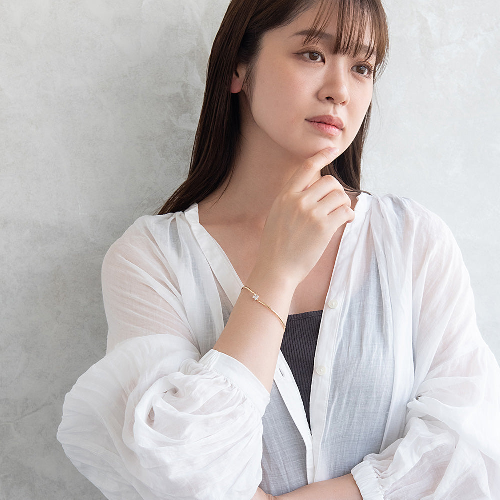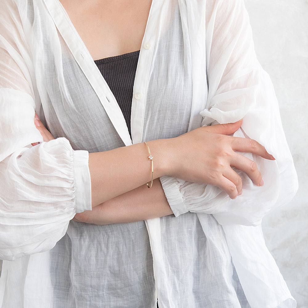 華奢で美しい、メタルのアーチラインに輝きに品格のあるキュービックジルコニアが煌めく、綺麗めデザイン。簡単装着、マグネット同士を近づけるだけ、磁石の留め具でラクにつけられるブレスレット。ひっかけるタイプの留め具が苦手な方や、ネイルアートをしている方にもおすすめです。機能性だけでなく、ファッションのポイントになるデザインも◎