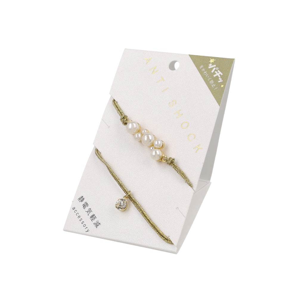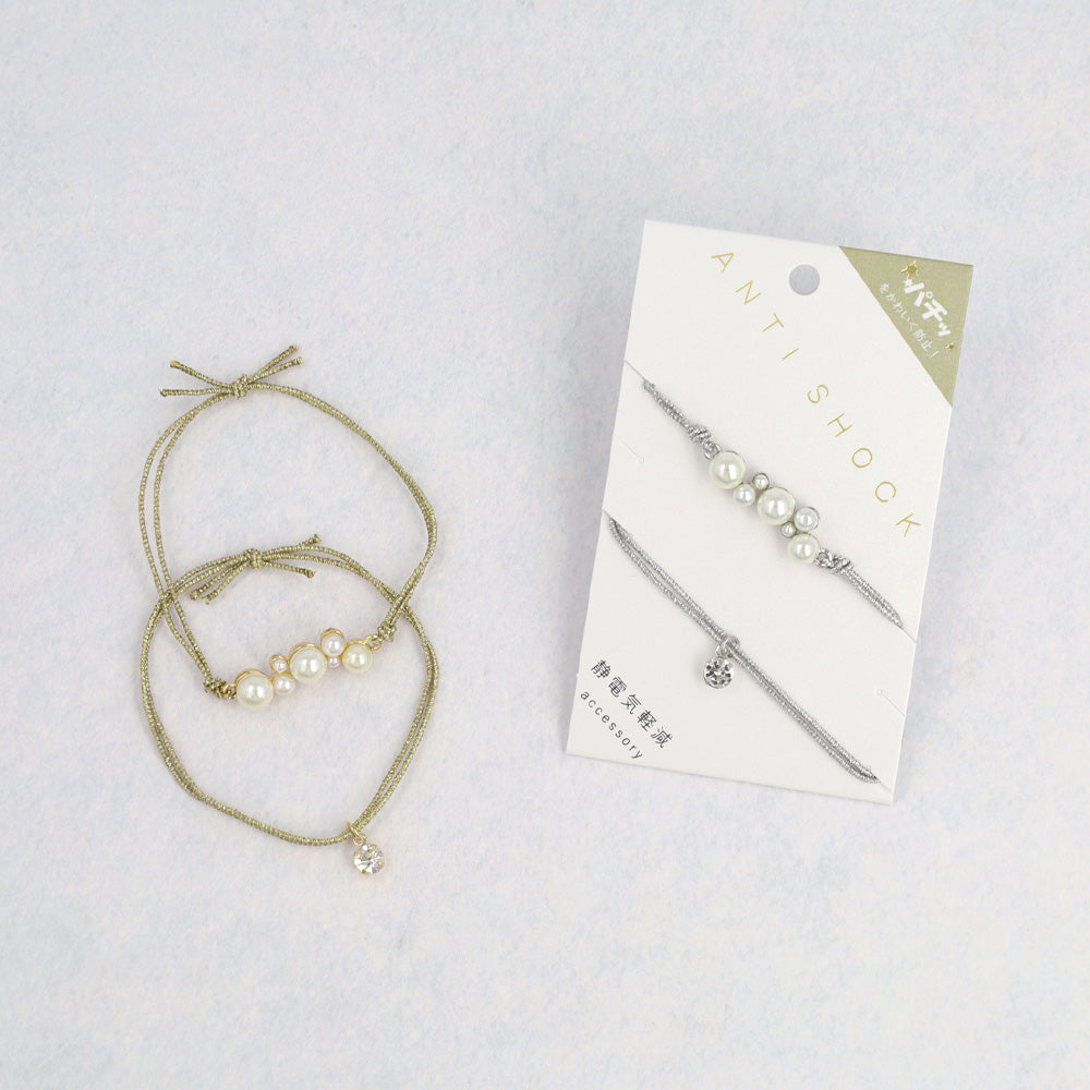 ブレスレット ANTI SHOCK 静電気軽減 ニッケルフリー メタル バブル パール ストーン ラメ糸 2本セット ゴムブレスレット
