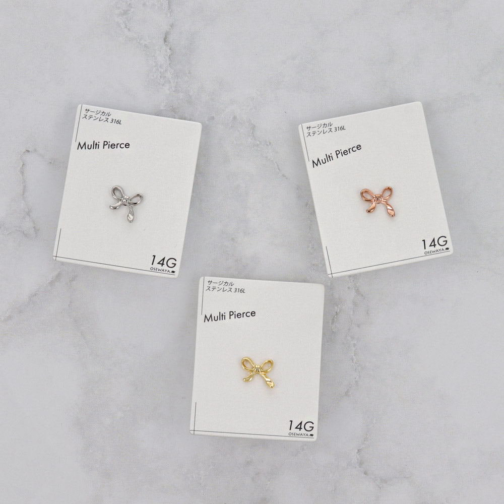 ボディピアス アシンメトリー リボン ストレートバーベル ネジ式 サージカルステンレス 14G 【1個販売】