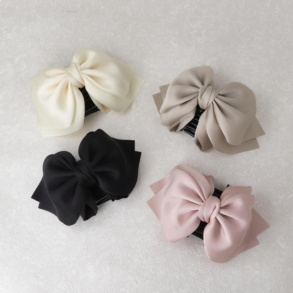 ヘアクリップ ダブル リボン カラー 無地 バンスクリップ