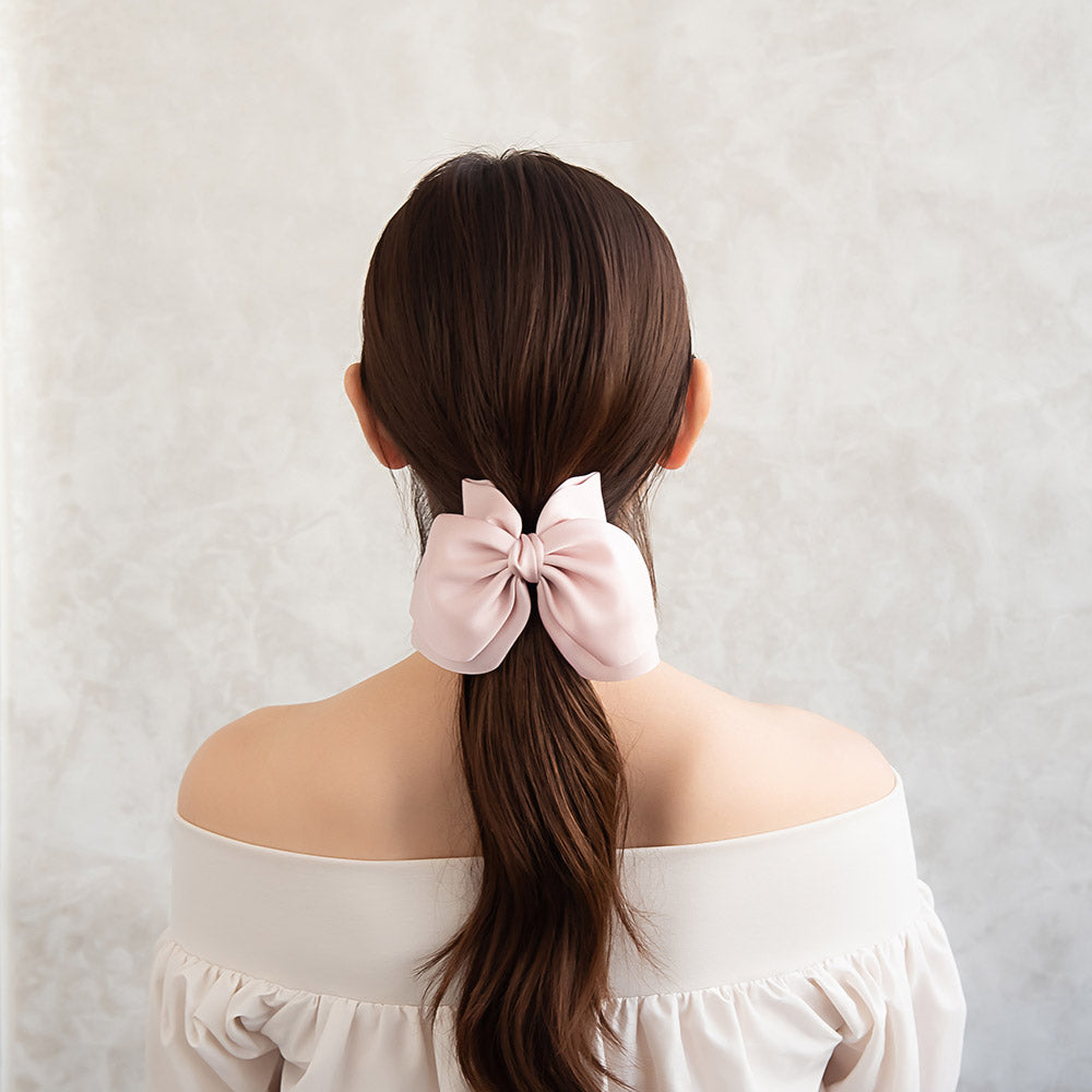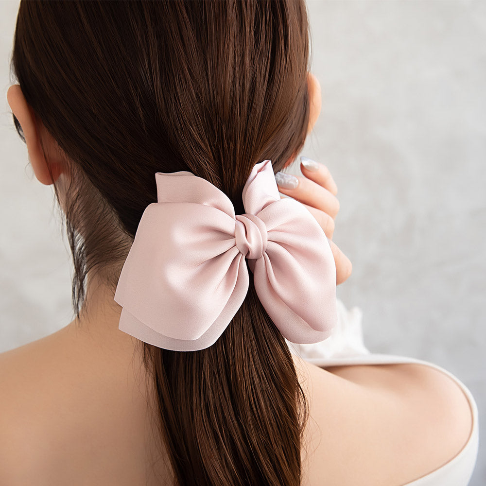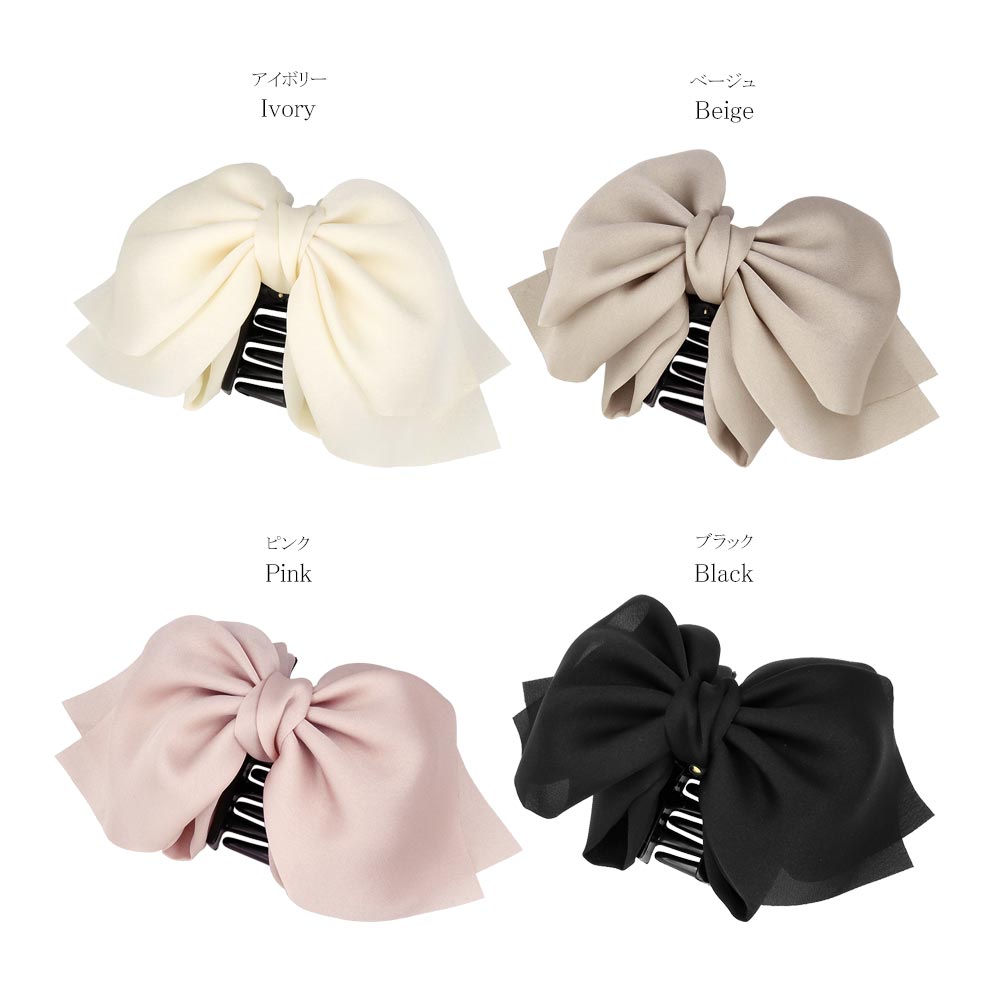 bs0652ふわり、ゆれる、ほんのりシアーなリボンのバンスクリップ。さりげないゆれ感がかわいさのポイント。カジュアルからキレイめまで幅広いコーデと好相性。使いやすいサイズ感でヘアアレンジのワンポイントにお勧めです。