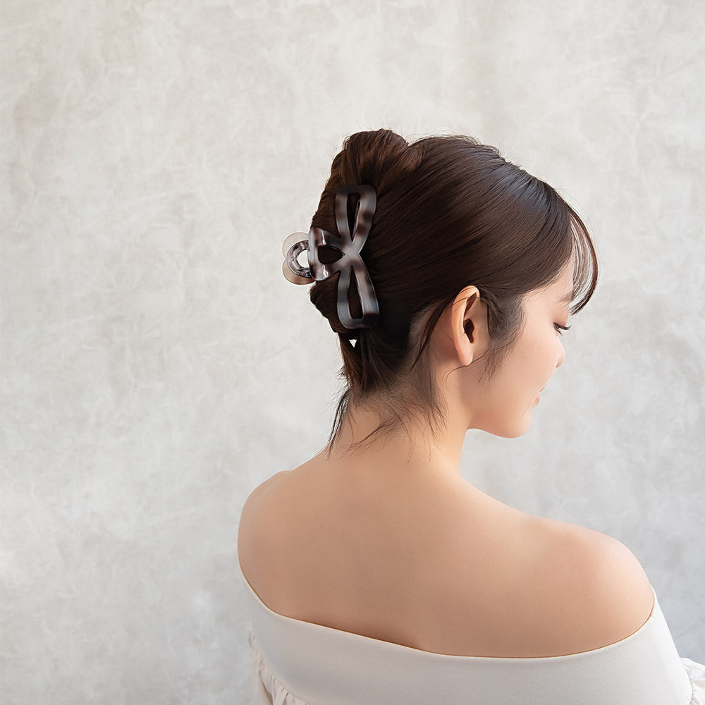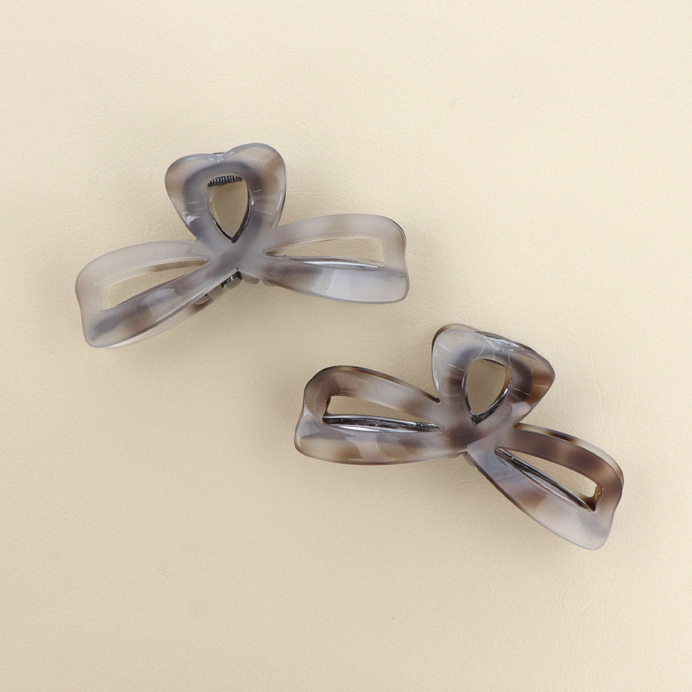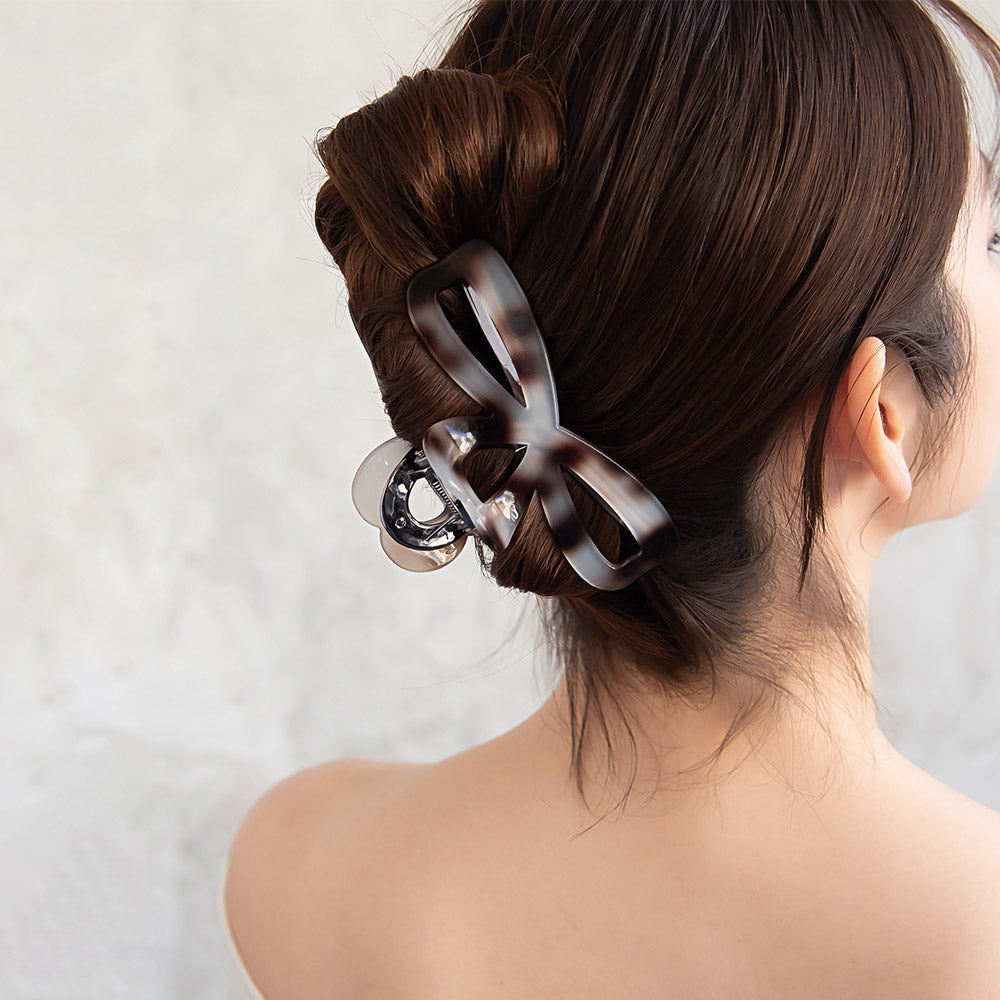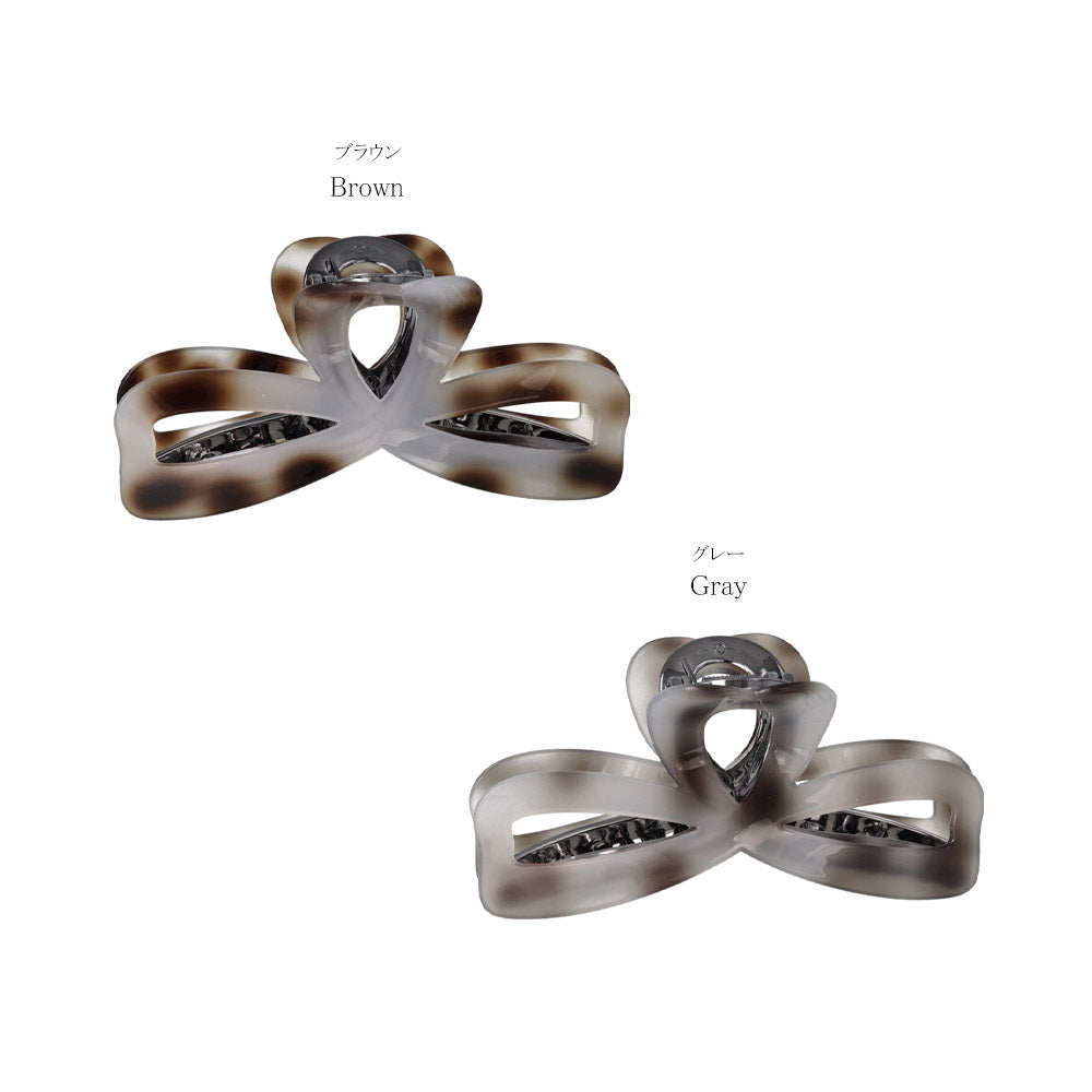bs0656シックな雰囲気のリボン型バンスクリップ。グレーを基調とした落ち着きある色味が、大人らしくも抜け感ある雰囲気に。かわいい、隠れハートデザイン。