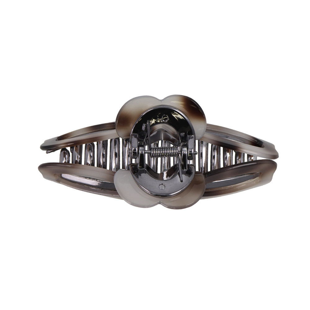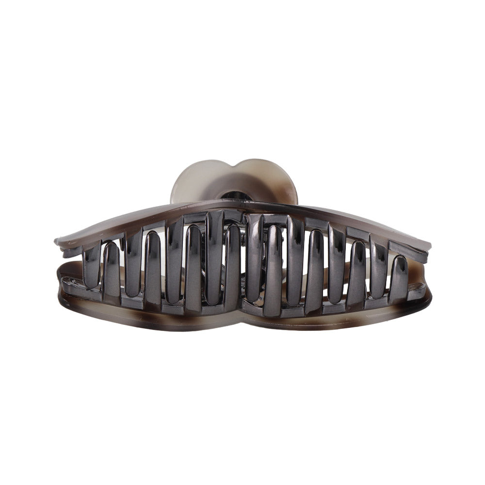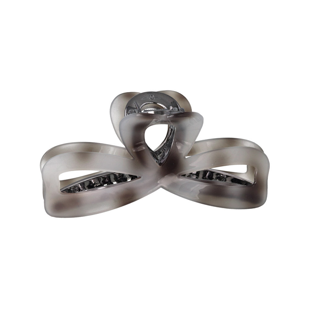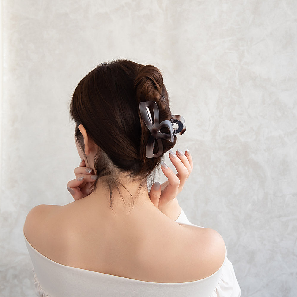 bs0656シックな雰囲気のリボン型バンスクリップ。グレーを基調とした落ち着きある色味が、大人らしくも抜け感ある雰囲気に。かわいい、隠れハートデザイン。