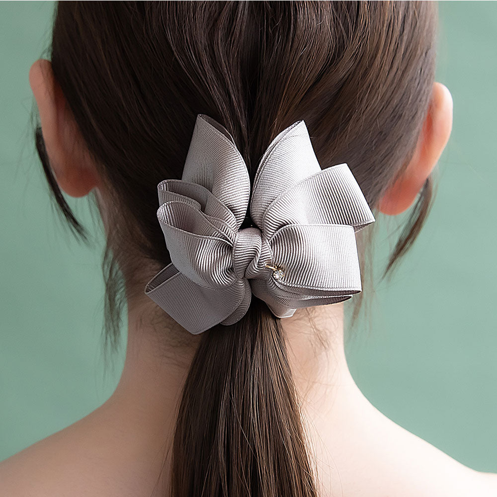 ヘアクリップ ボリューム レイヤード ループ グログラン リボン ストーン カラー バンスクリップ