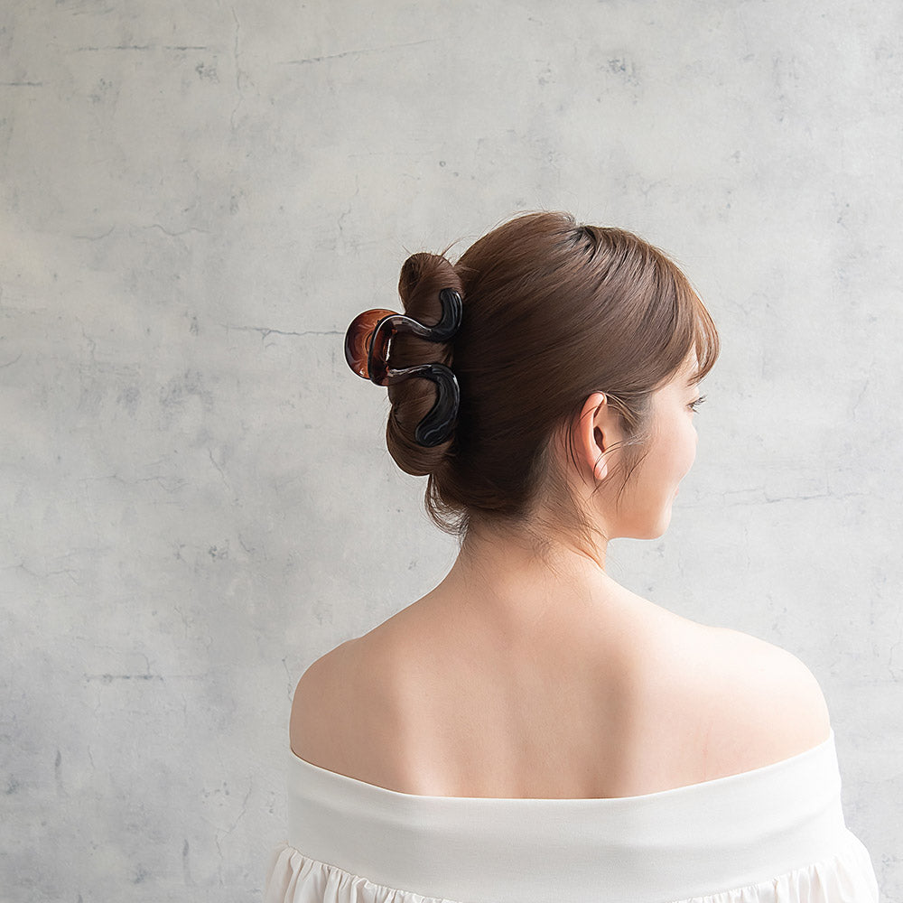 bs0698アートなウェーブデザインのヘアクリップは、ゆるさがあってかわいい。ざっくりまとめてお洒落にきまる。しっかりまとまる大きめサイズ。ベーシックカラーで使い勝手抜群◎お出かけにも、お家でも◎