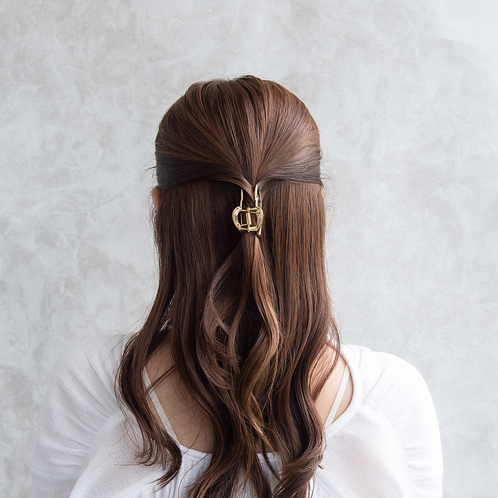 メタル素材のアイテムで抜け感のあるまとめ髪に。可愛いだけじゃなく、ラフにまとめて洒落感のでるヘアクリップ。