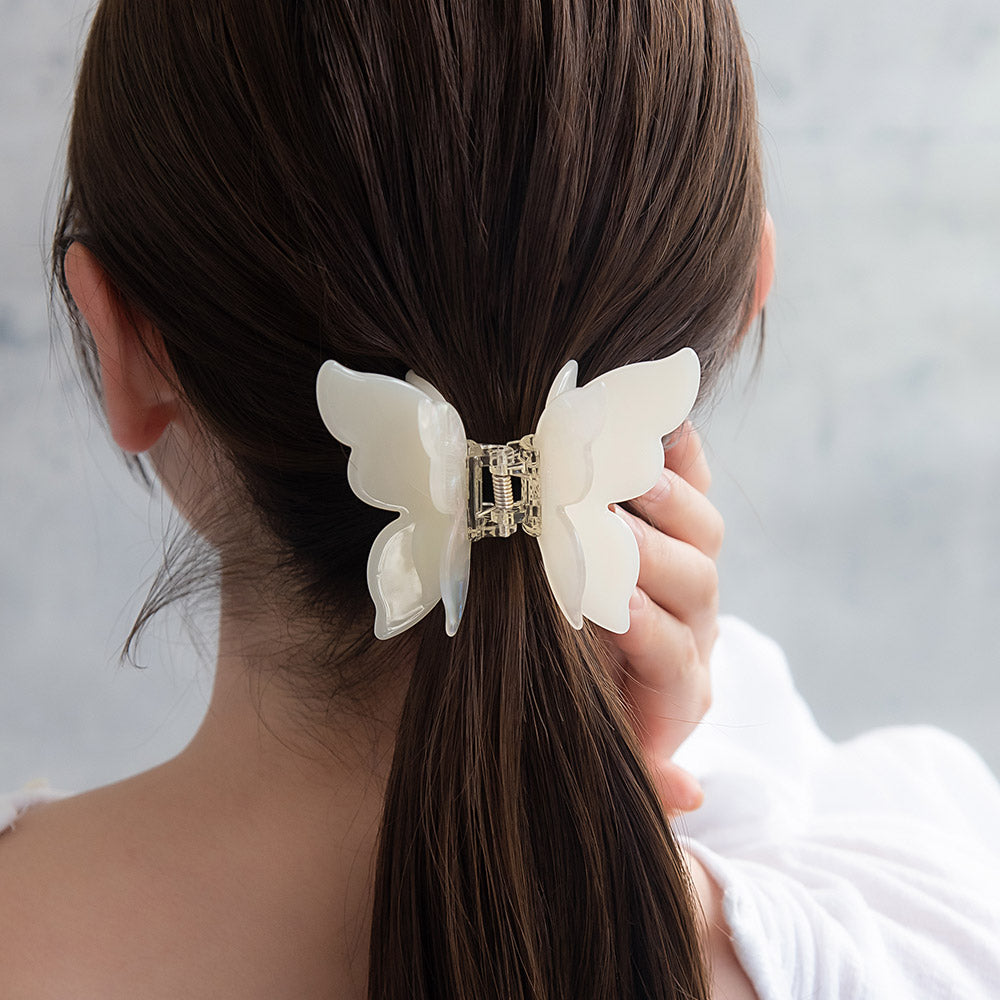 ヘアクリップ ビッグ バタフライ マーブル カラー バンスクリップ