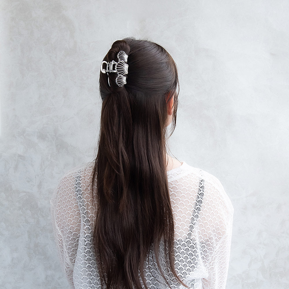 ヘアクリップ メタル シェル トリプル 透かし バンスクリップ