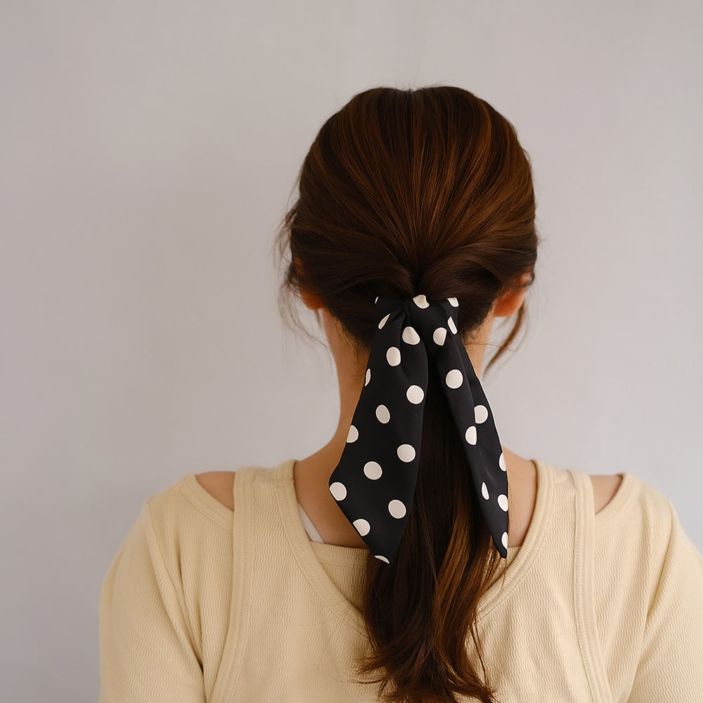ヘアクリップ リボン ロング ドット バンスクリップ