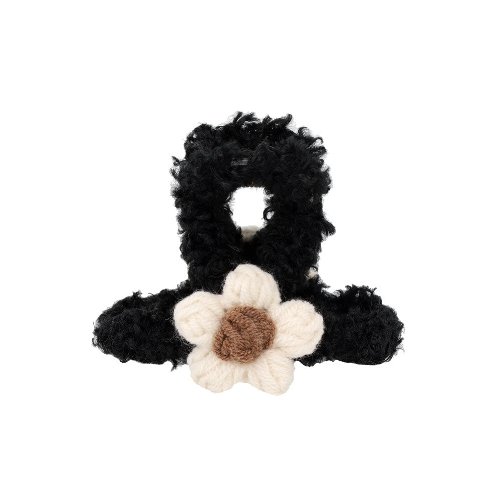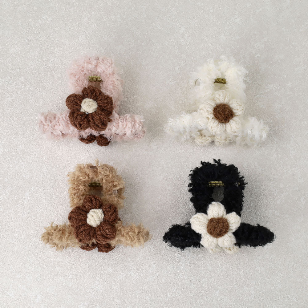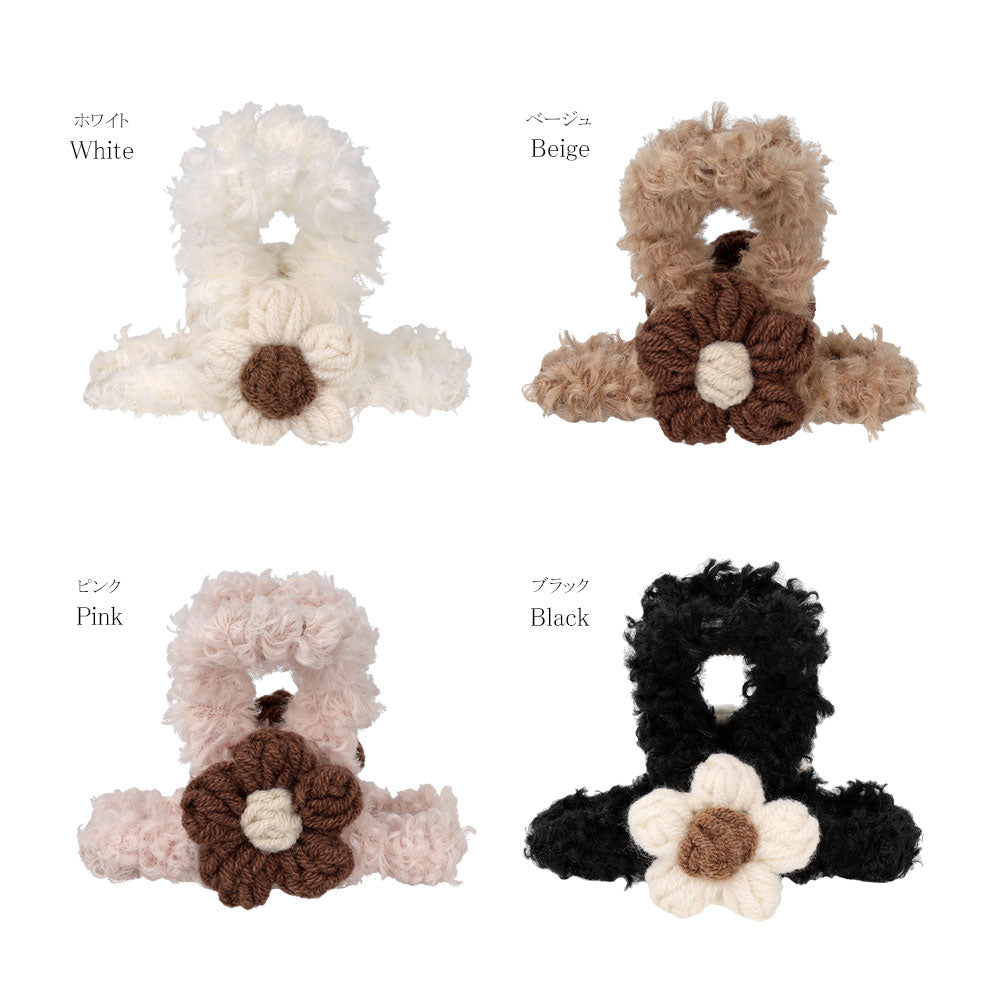 ヘアクリップ 毛糸 かぎ編み フラワー もこもこ ロール バンスクリップ