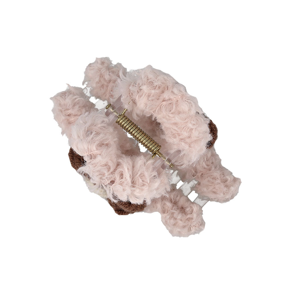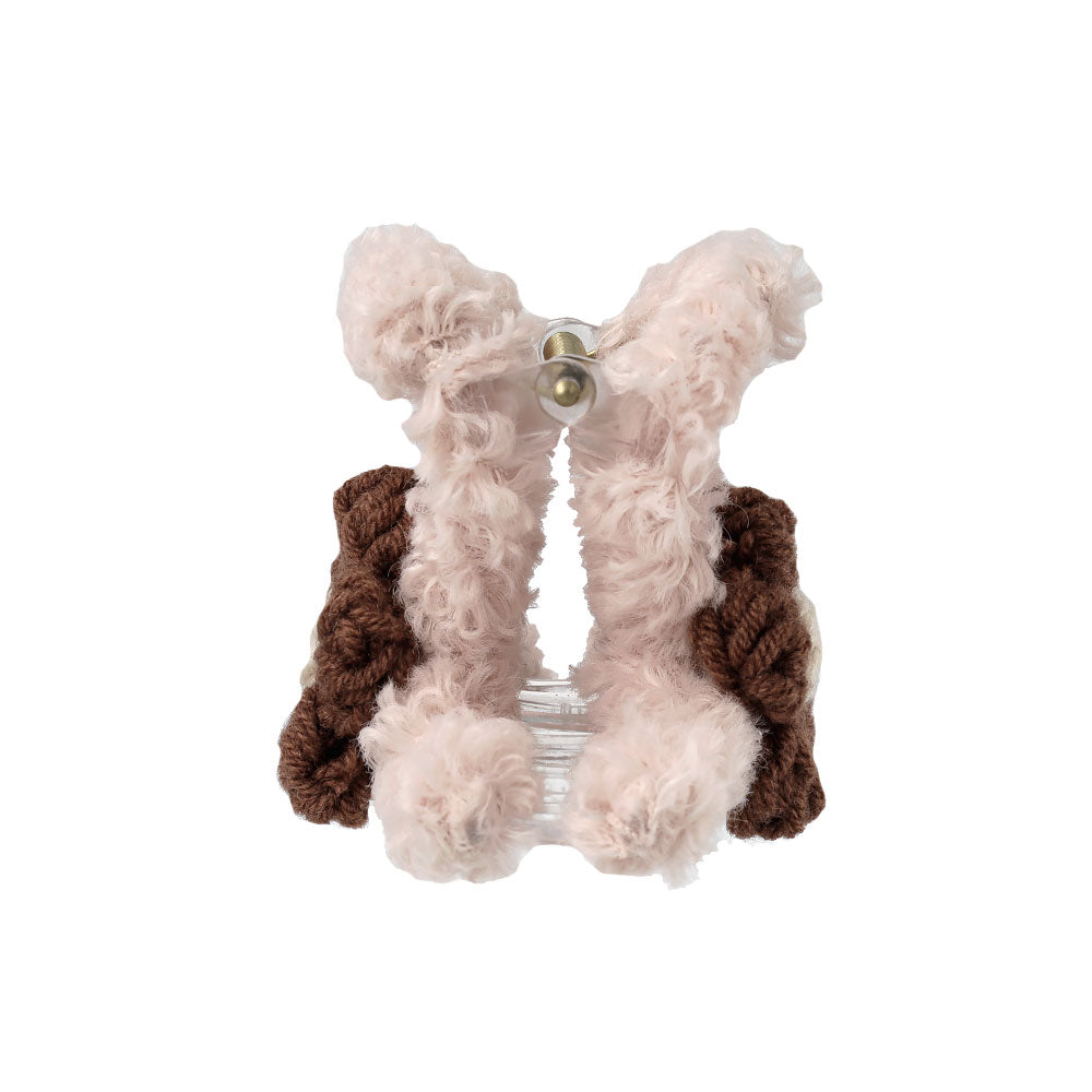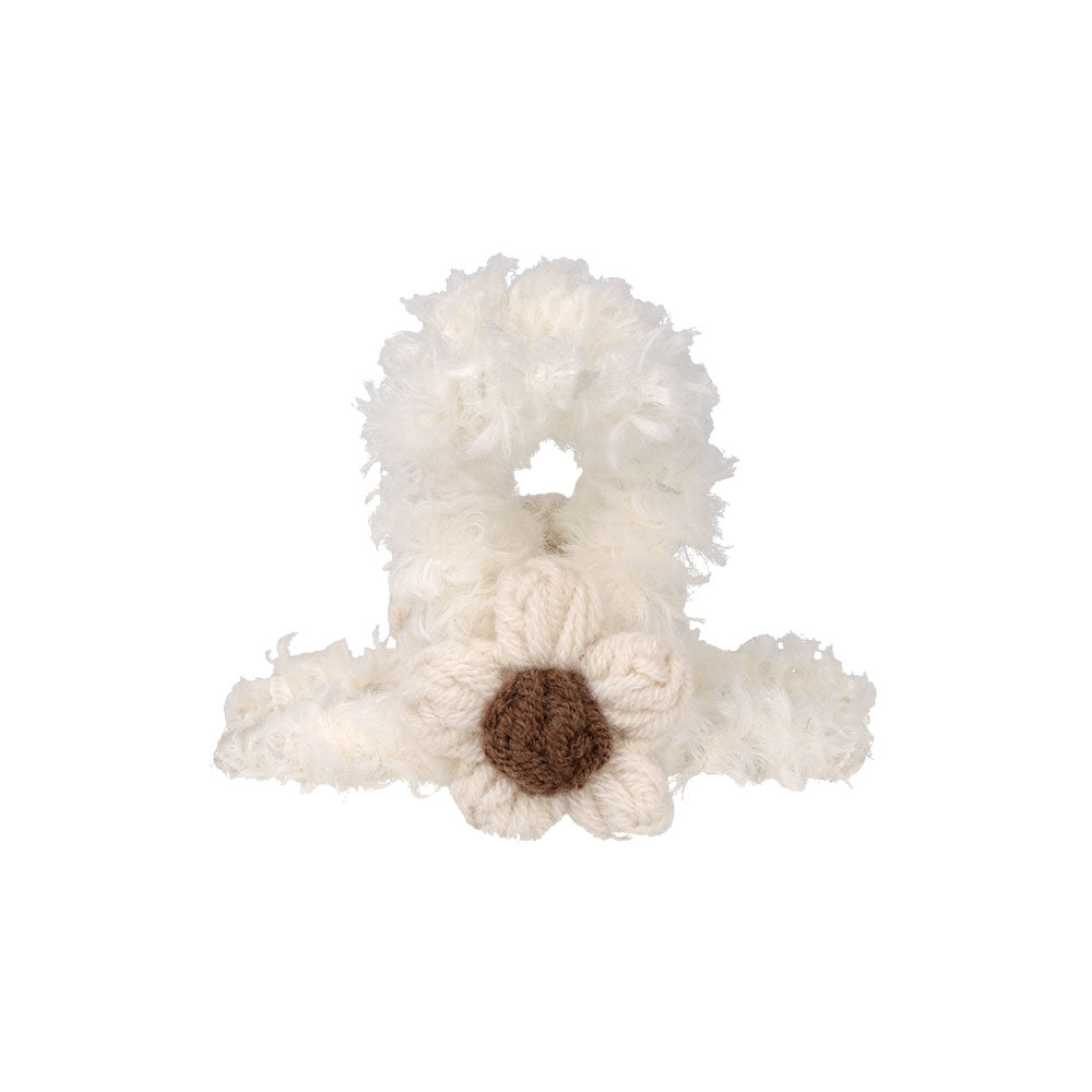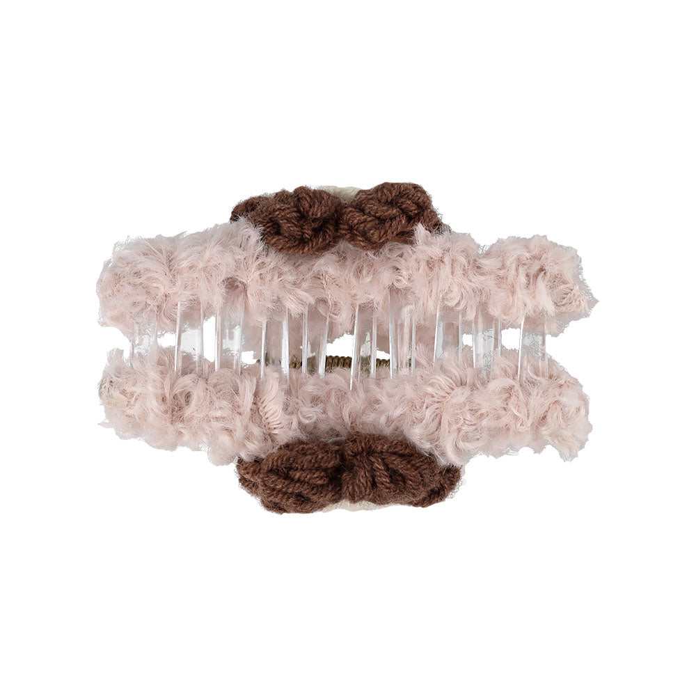 bs0785パッと目を引く旬素材、もこもこループバンスクリップ 。立体的なフラワーモチーフがポイントに。旬なブラウンカラーの配色が◎バックにつけても◎