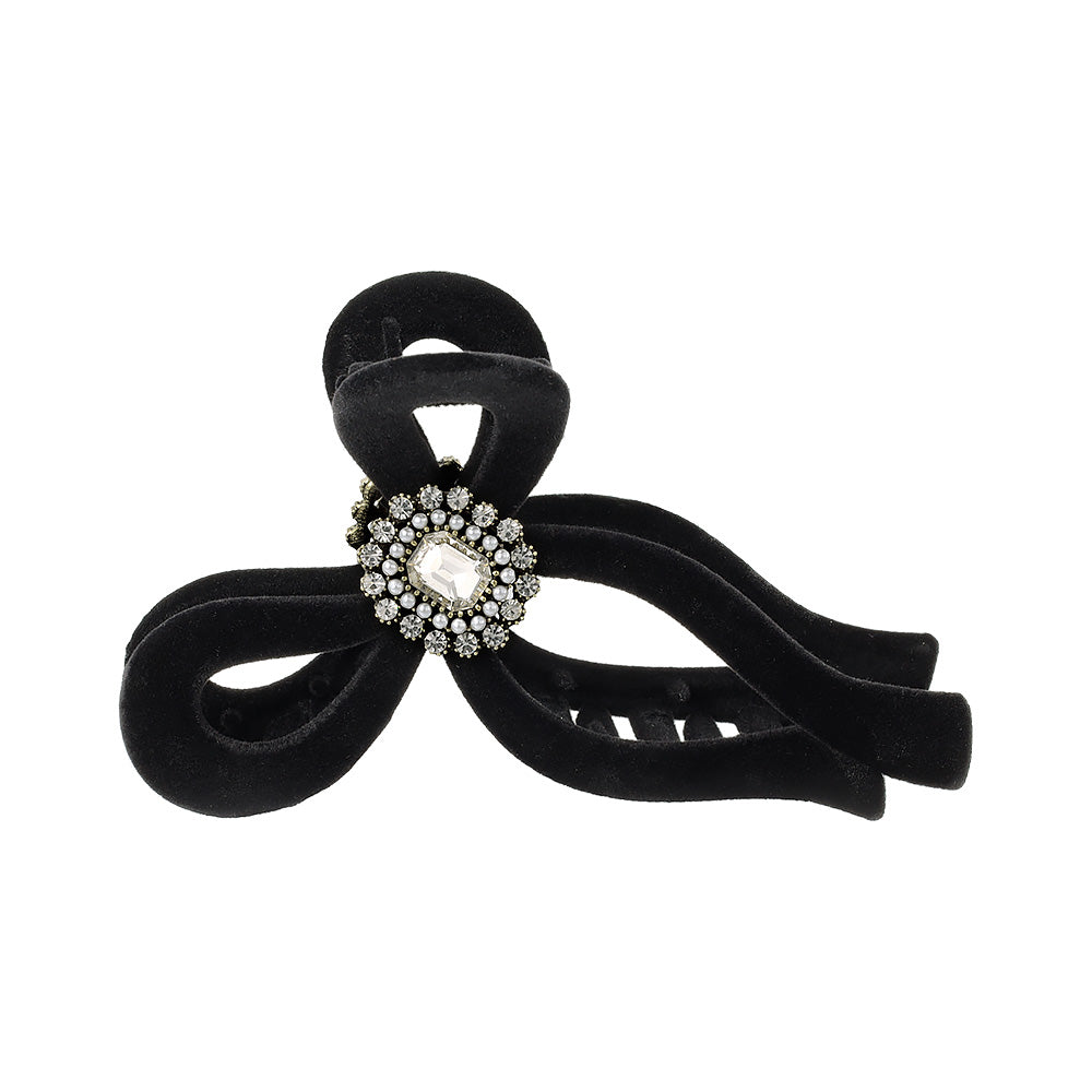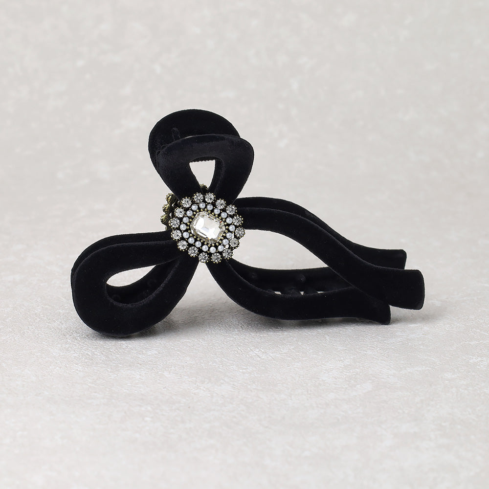 ヘアクリップ フロッキー パール ビジュー アンティーク調 リボン バンスクリップ