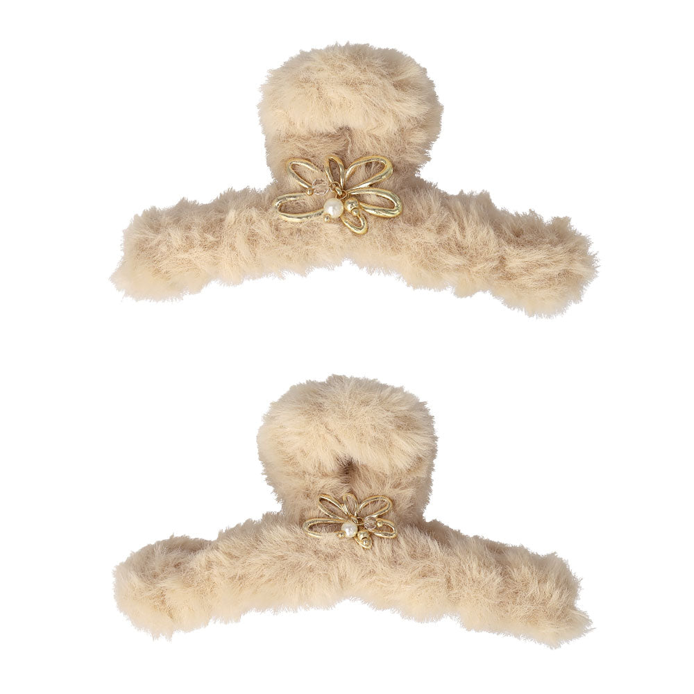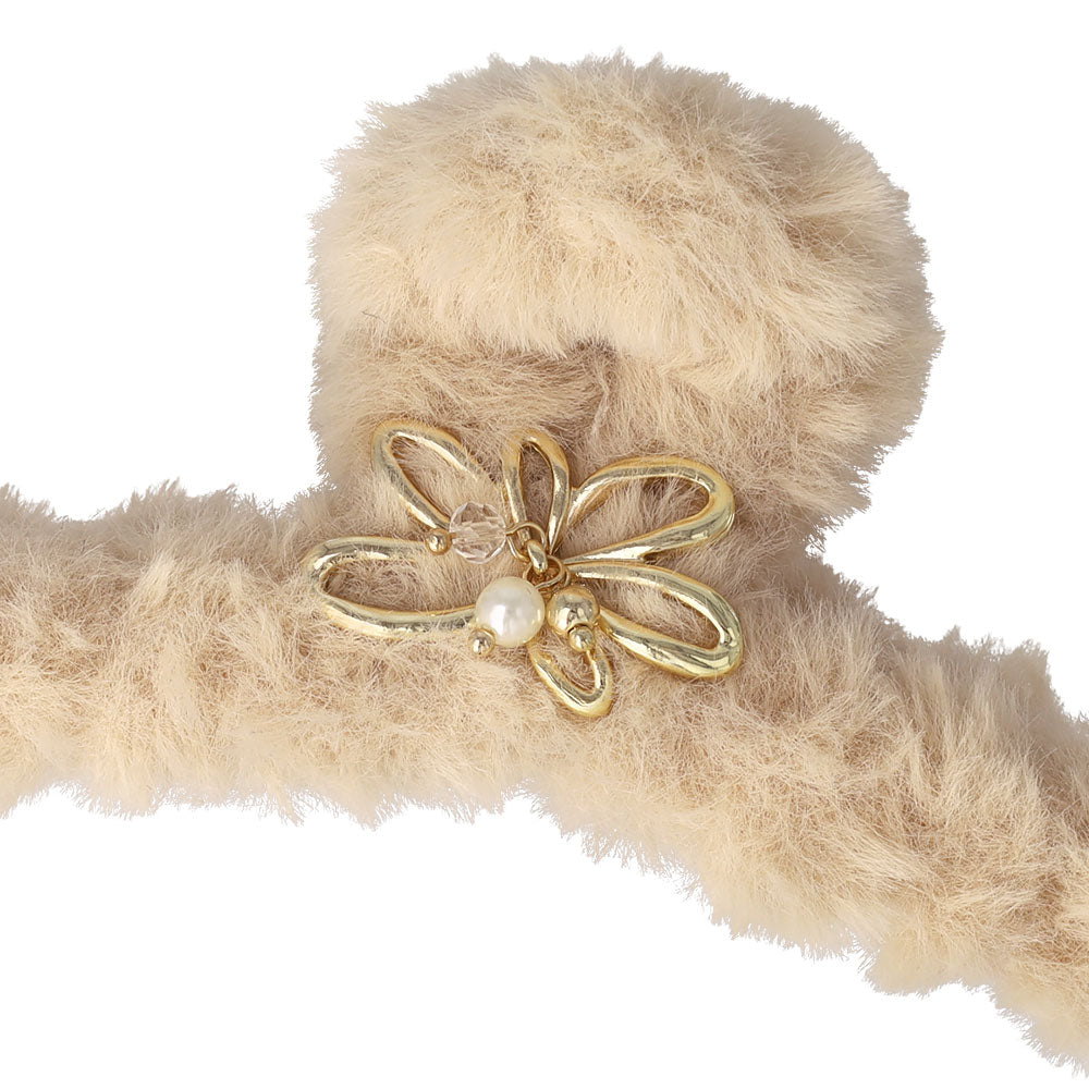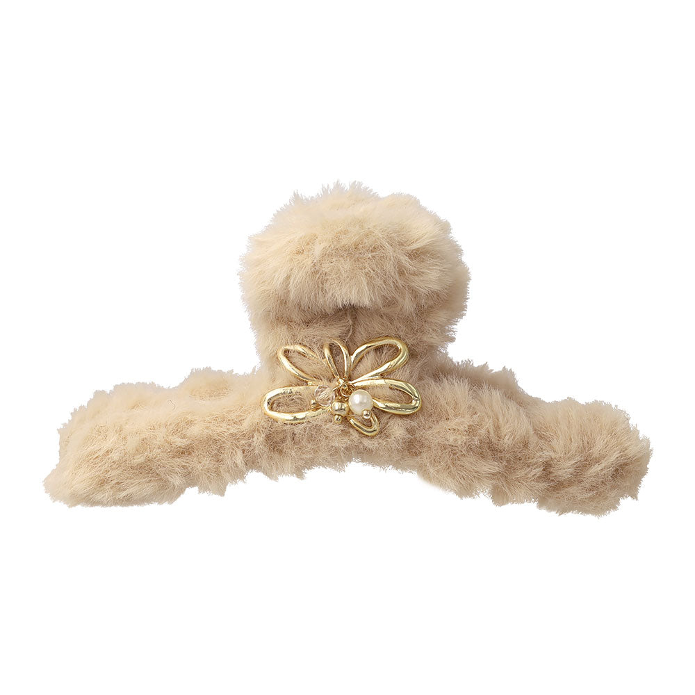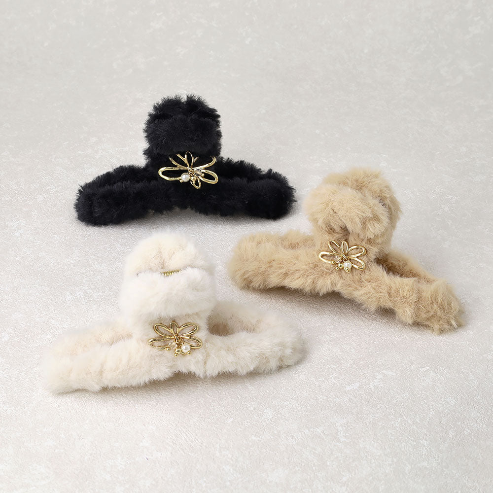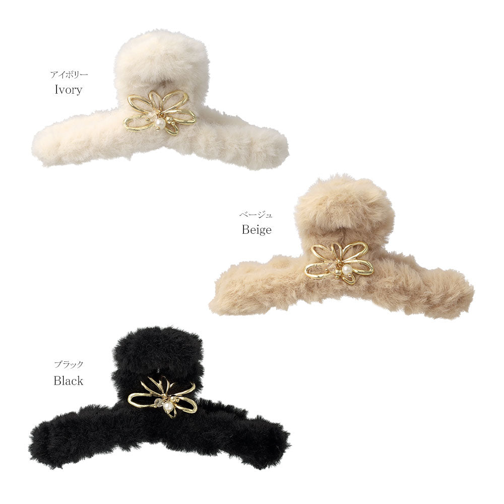 bs0797シーズンムード高まるファー素材のバンスクリップ。いつものコーディネートが簡単に秋冬仕様に。