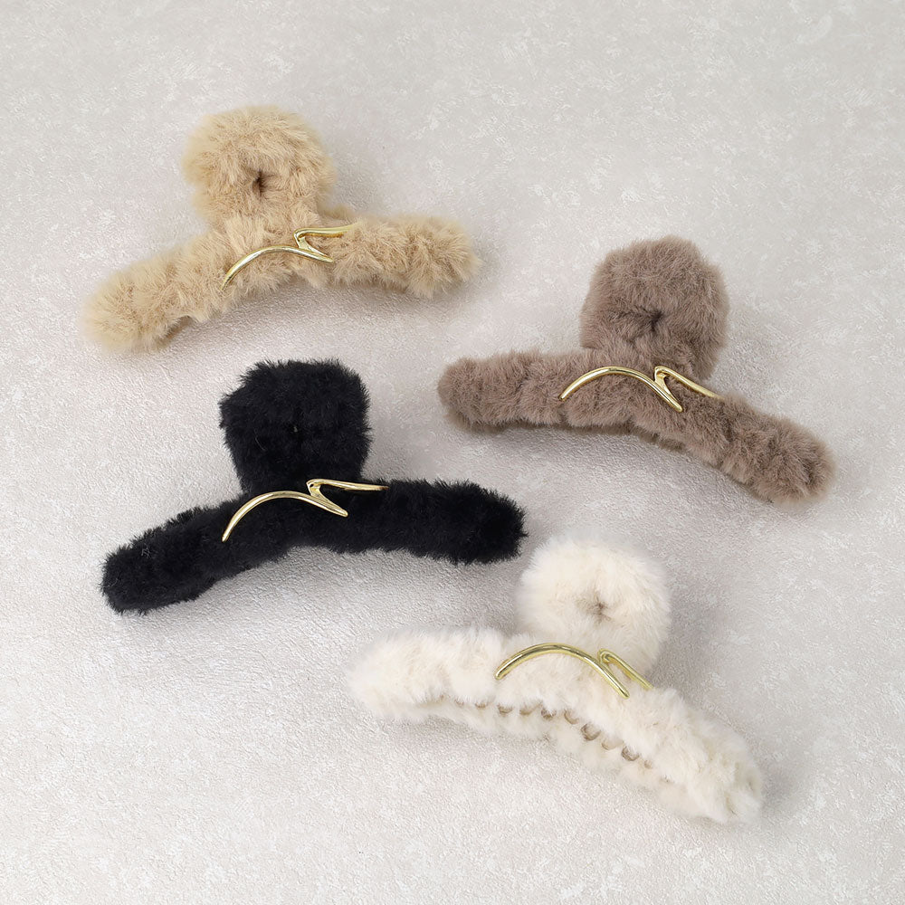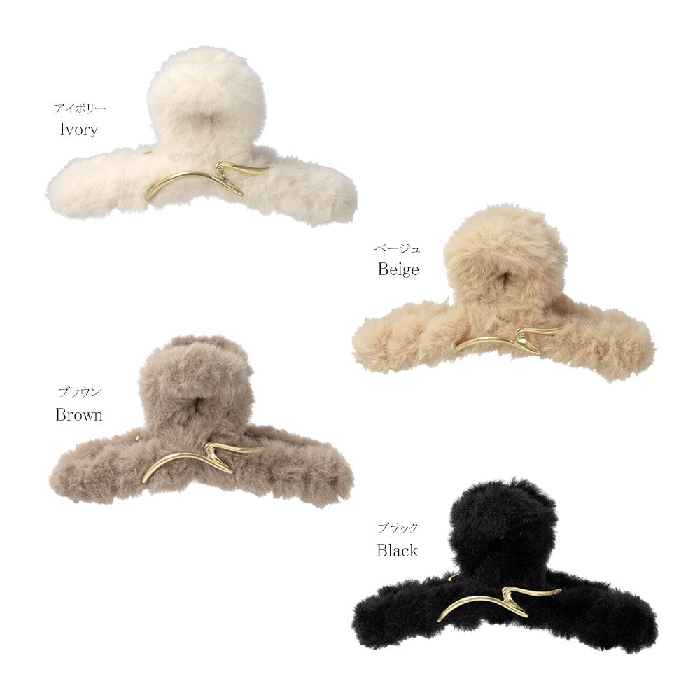 bs0798シーズンムード高まるファー素材のバンスクリップ。いつものコーディネートが簡単に秋冬仕様に。