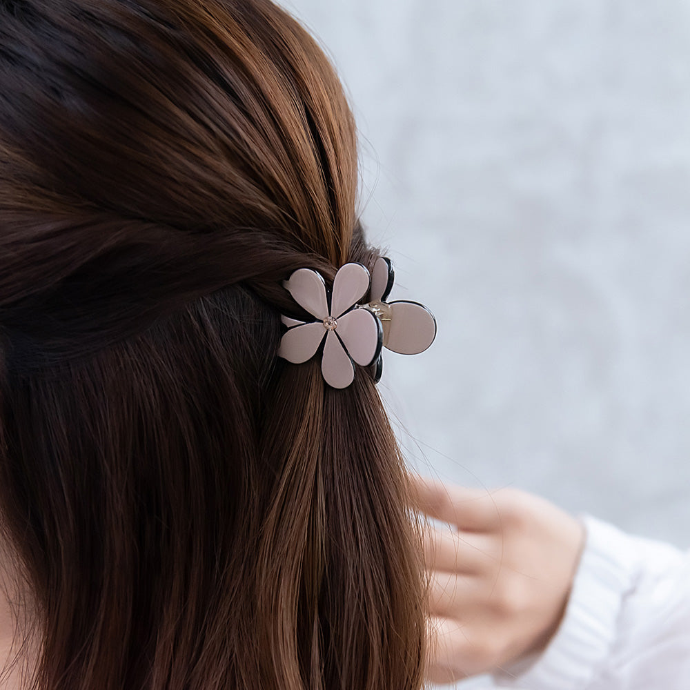 bs0814大人っぽくカラーをオンできる派手すぎない、バンスクリップ。ほどよい甘さがコーデに効く、フラワーモチーフ。レディに仕上がる品の良さ。さっと簡単に品のあるまとめ髪へ。アレンジに幅の効くミニサイズで、はさむだけで手軽につけられるヘアクリップ。