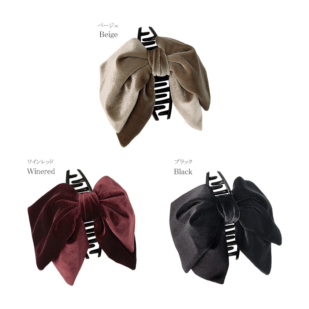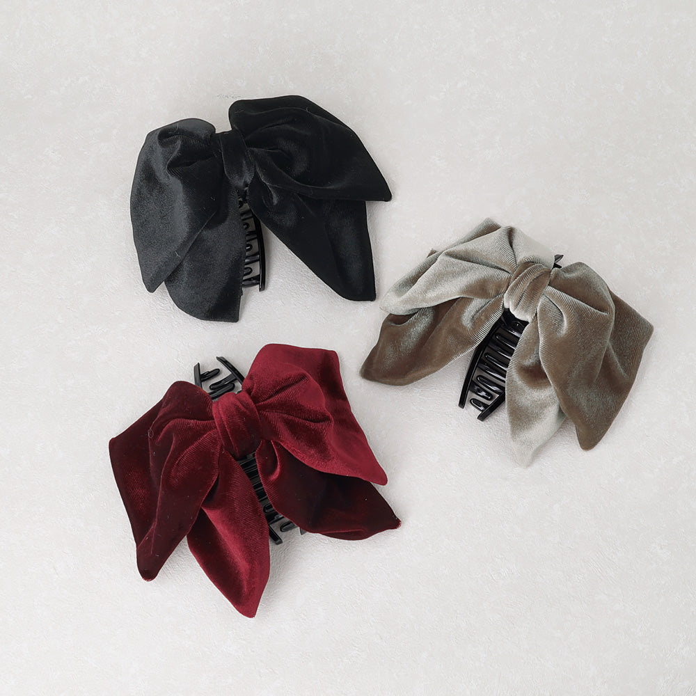 bs0820シーズンムード高まるベロア素材のリボンバンスクリップ。いつものコーディネートが簡単に秋冬仕様に。