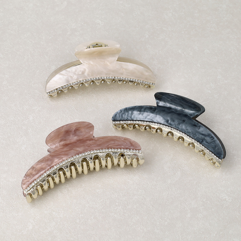 bs0830綺麗なオーロラマーブルを使ったバンスクリップ。上品なカラー展開にキラキラガラスのラインストーンがアクセント◎