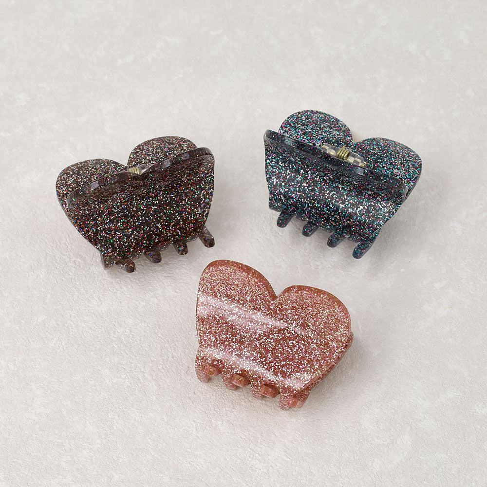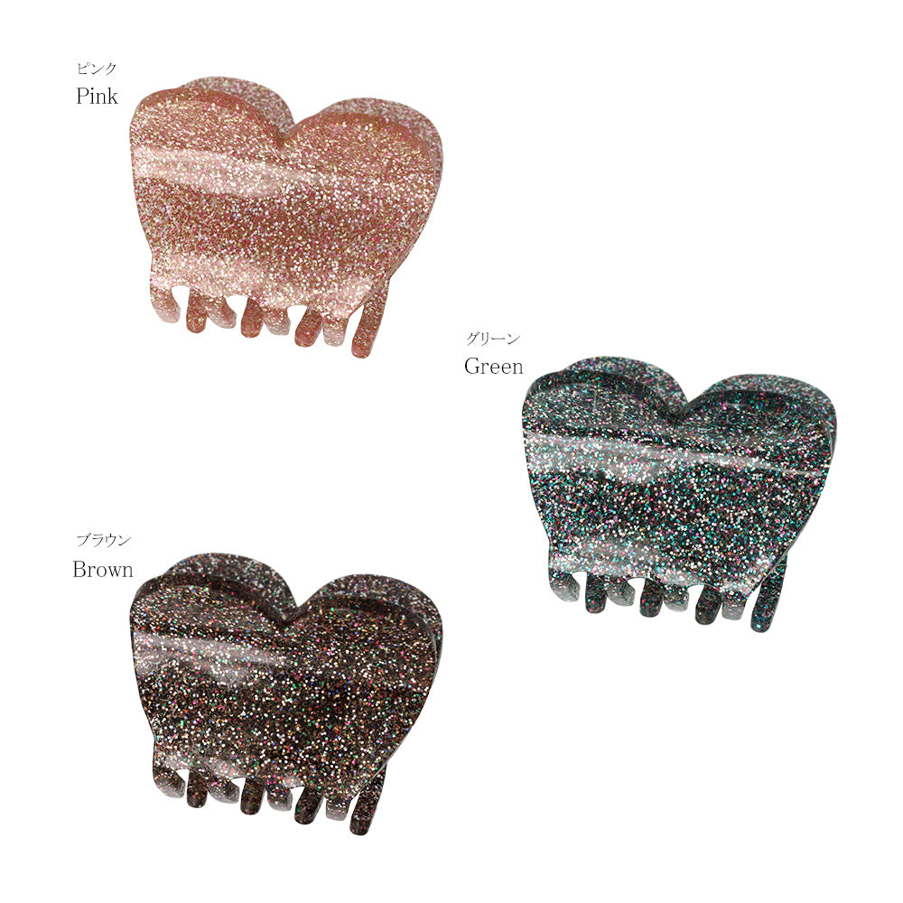 bs0831贅沢にたっぷりとラメを使ったアクリル素材のハート型バンスクリップ。カジュアルに着けられる丁度いいサイズ感◎