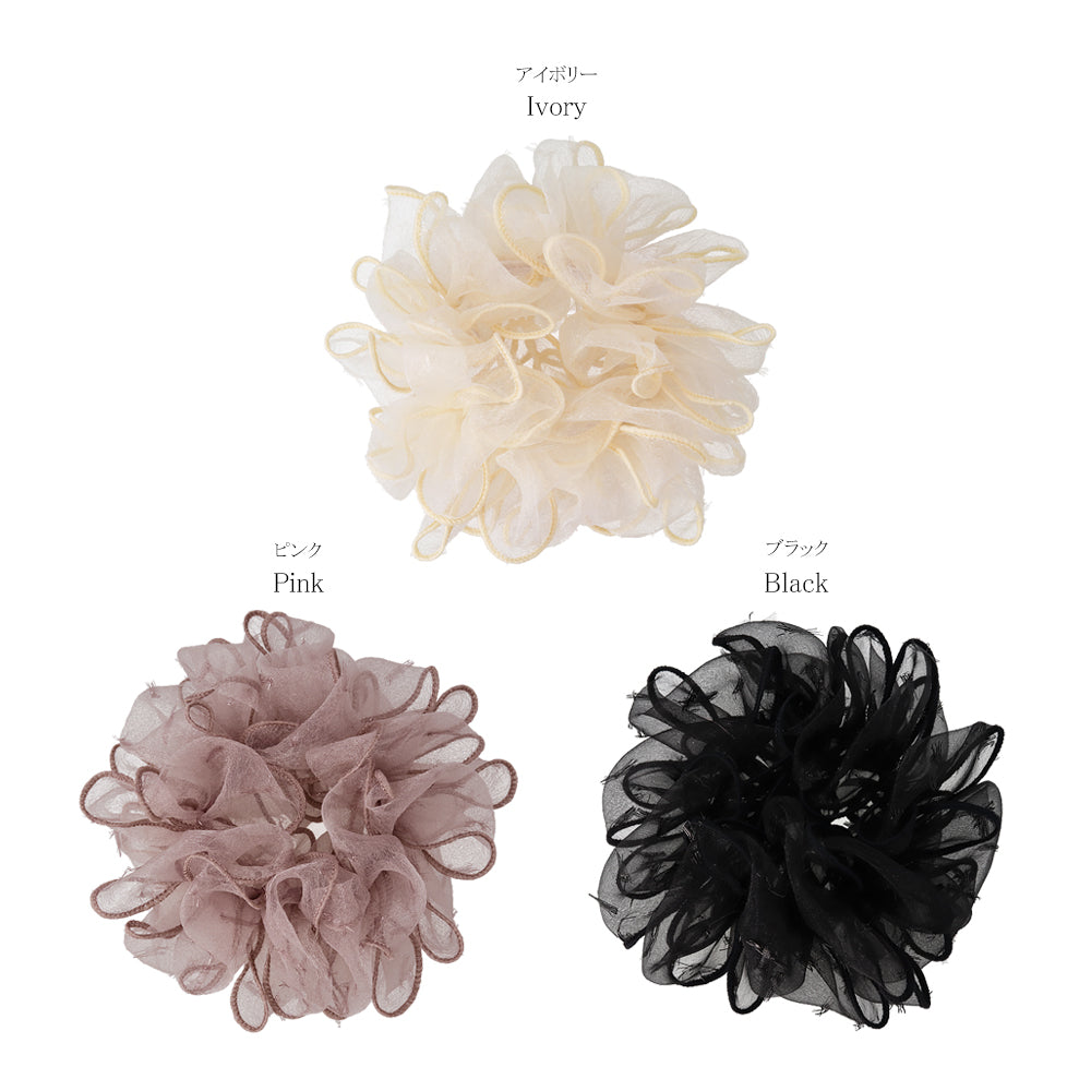 cc0245きらきらとちりばめられたチュールが煌めくシアー素材のボリューム感あるシュシュ。