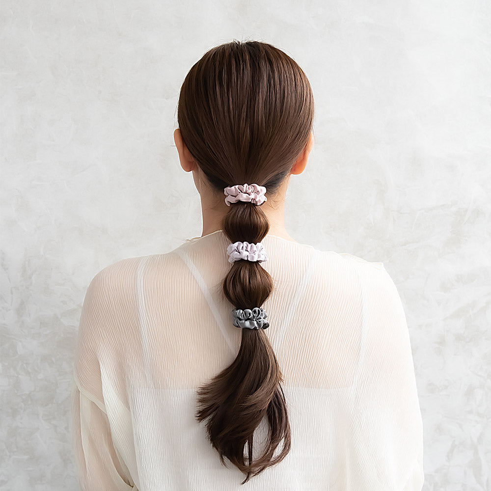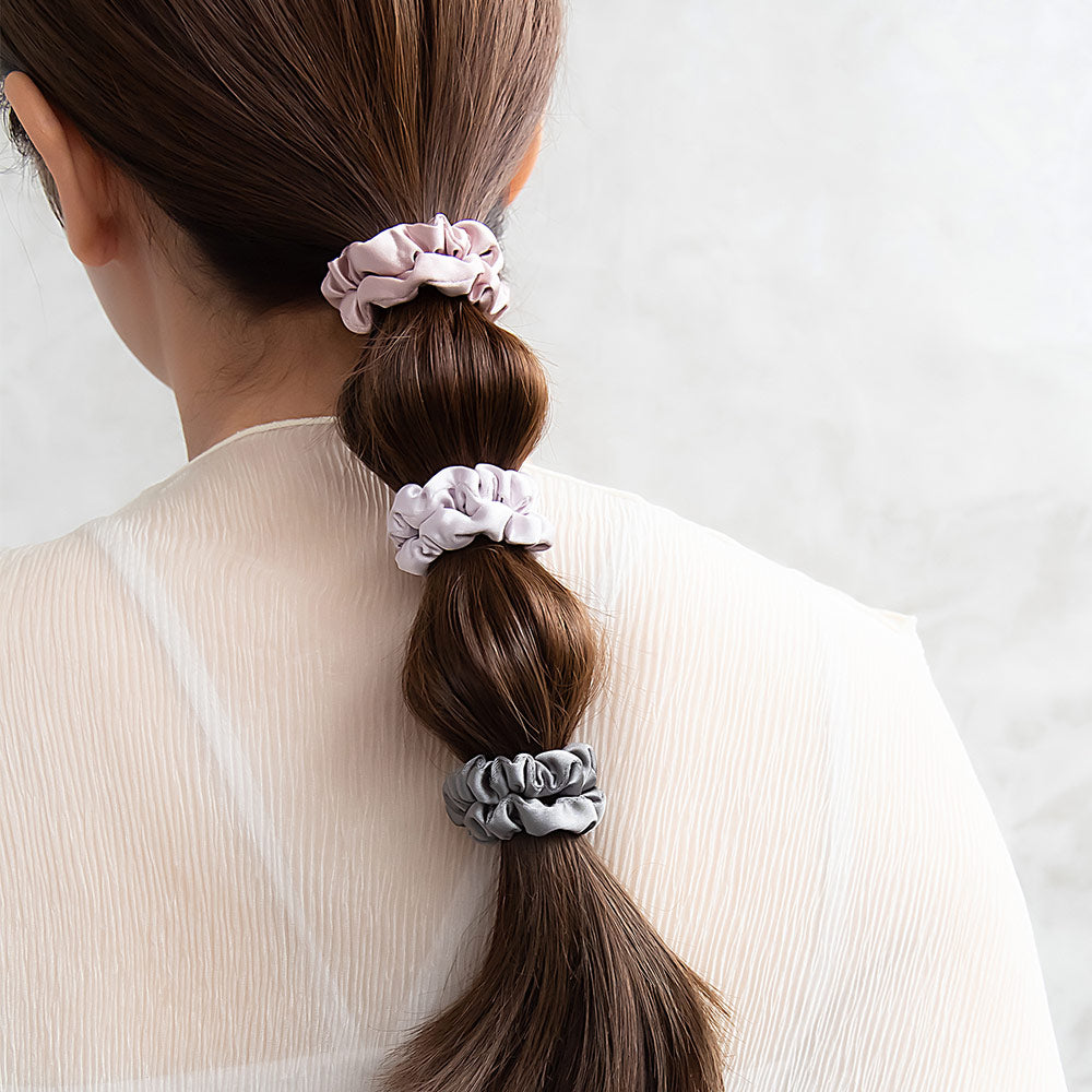 cc0249アレンジしやすくオンオフともに使いやすい、小さめ直径のサイズ感。軽い着け心地で、結び跡がつきにくく髪にやさしいアイテム。お出かけにも、お家でも◎親子で兼用も◎