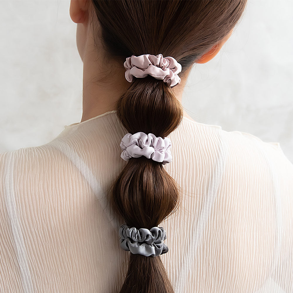 シュシュ 無地 カラー 3色 スリム ミニサイズ 3個セット ヘアゴム ヘアポニー
