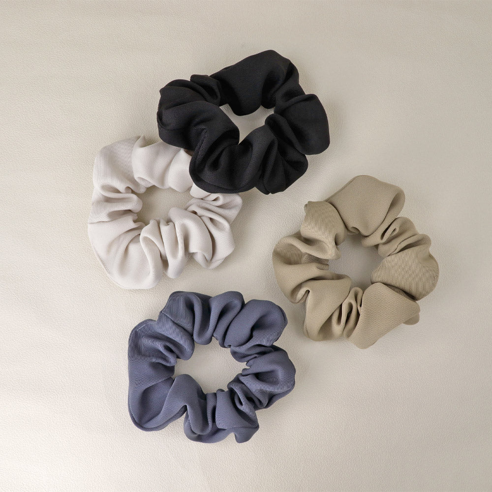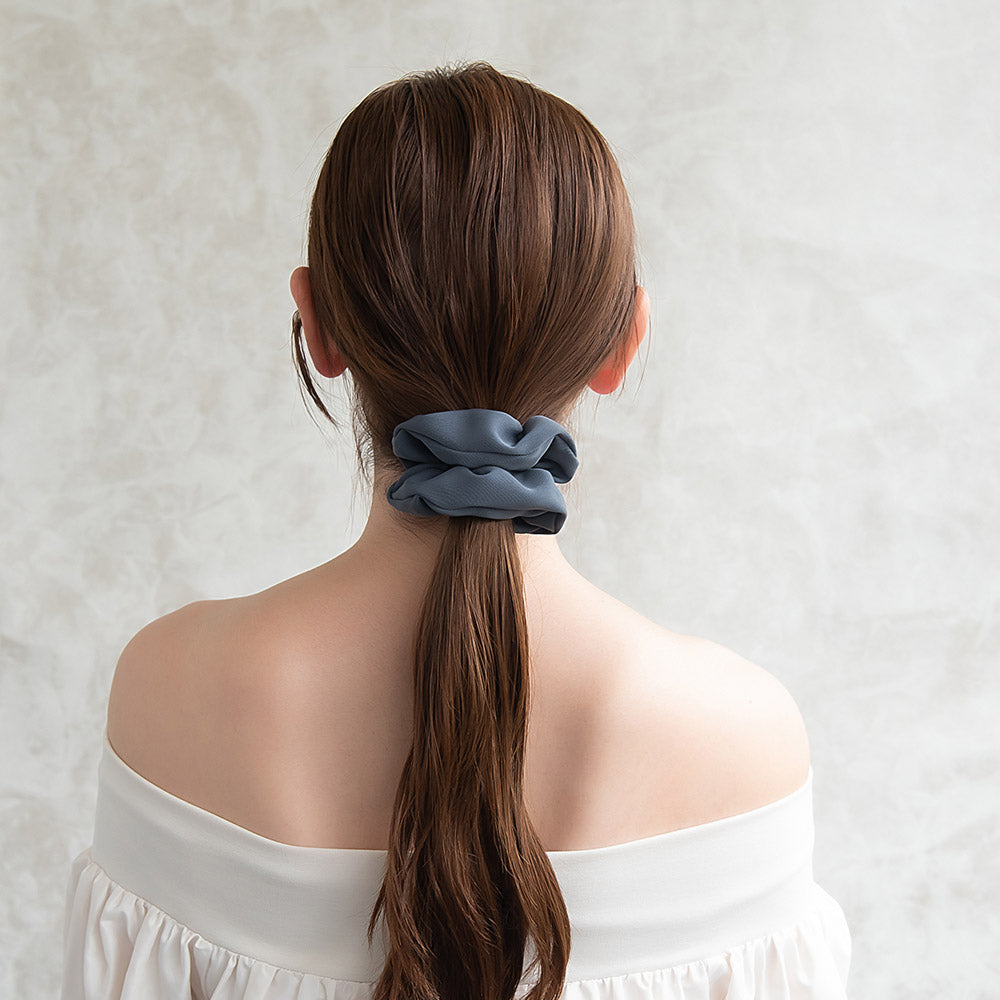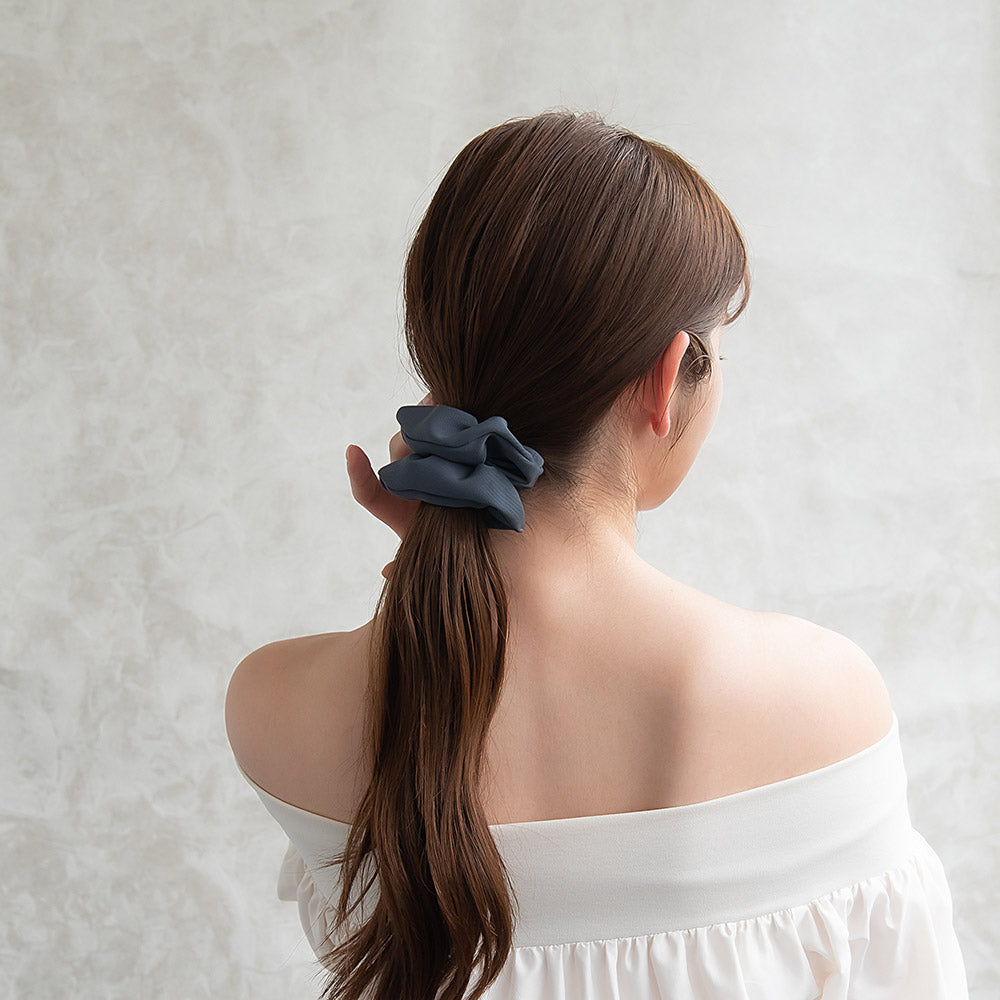 cc0251ベーシックカラーのシュシュ。飽きの来ない落ち着きあるカラーリングで様々なスタイリングにマッチしてくれます。とっさのまとめ髪や気分をリフレッシュしたい時にも。オールシーズン使える万能アイテム◎お出かけにも、お家でも◎