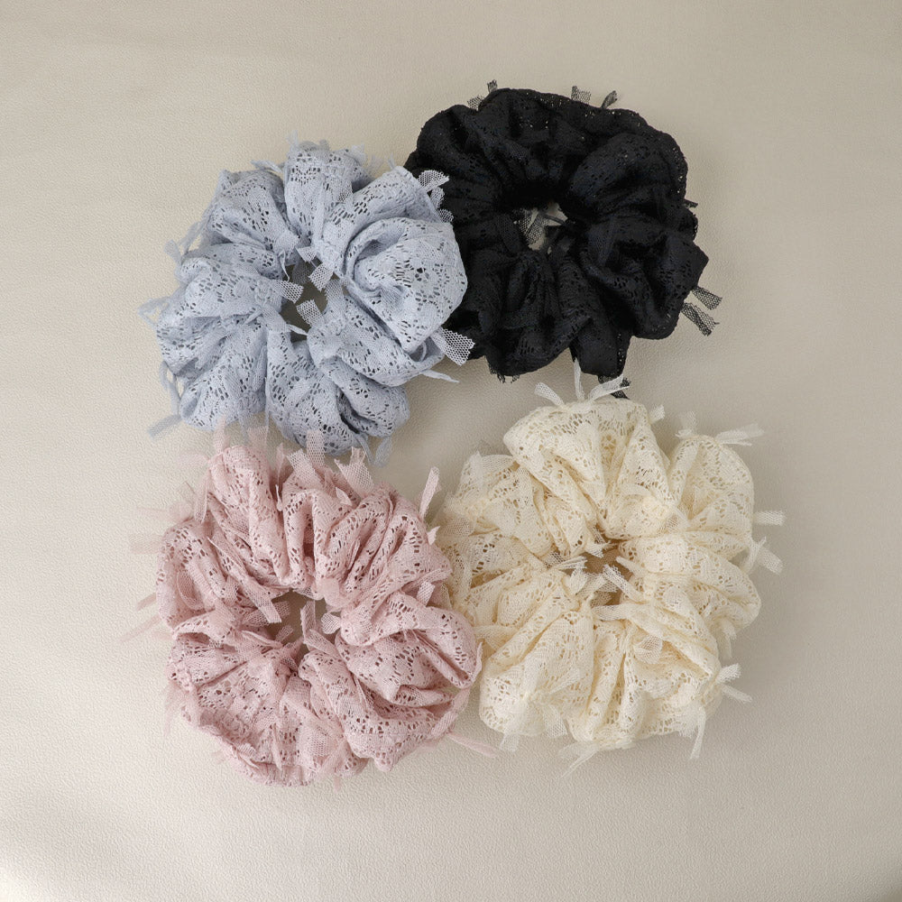 シュシュ フラワー レース風 デコレーション チュール ヘアゴム ヘアポニー