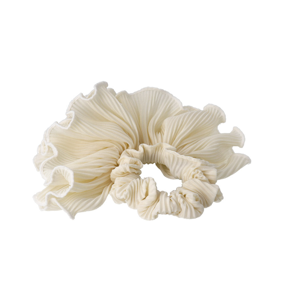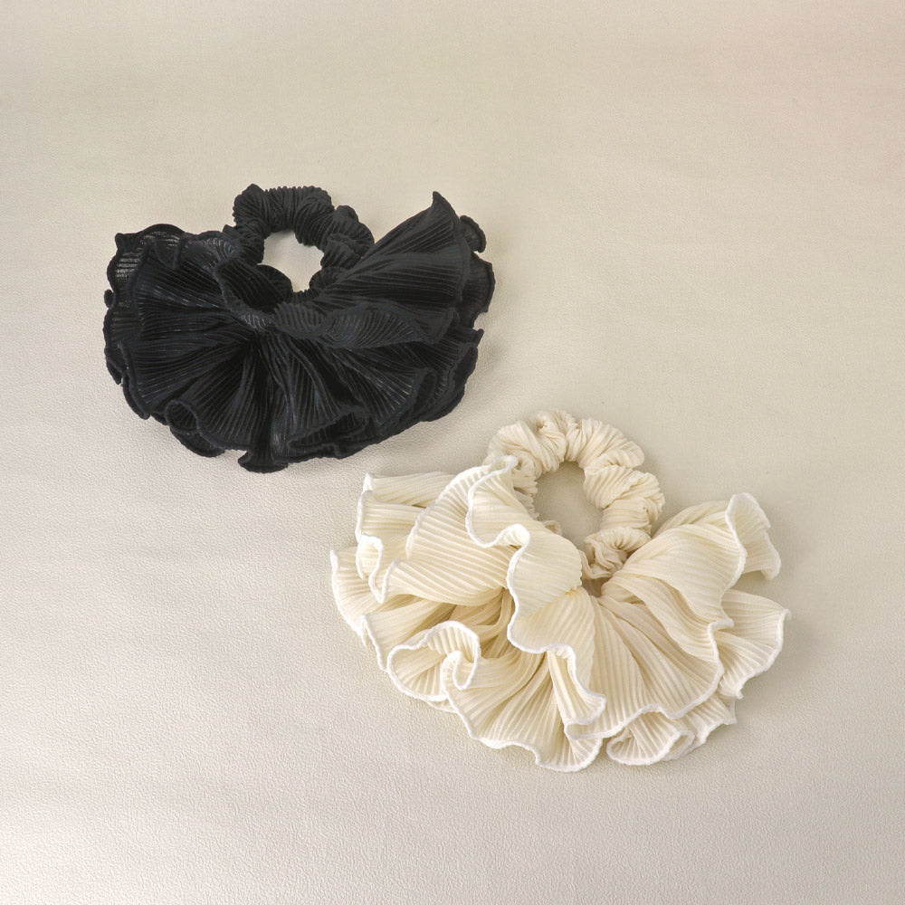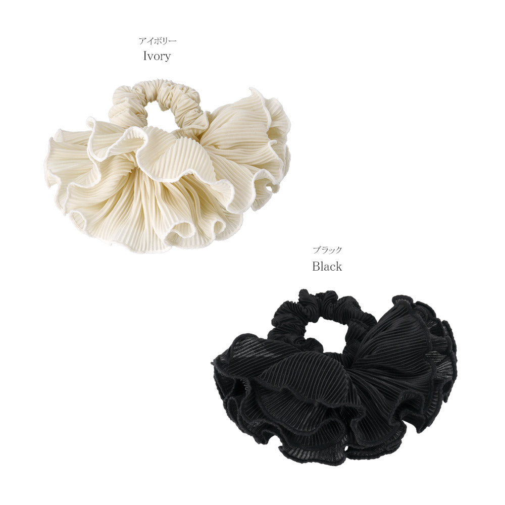 シュシュ プリーツ ハーフ フリル ボリューム モノトーン カラー ヘアゴム ヘアポニー