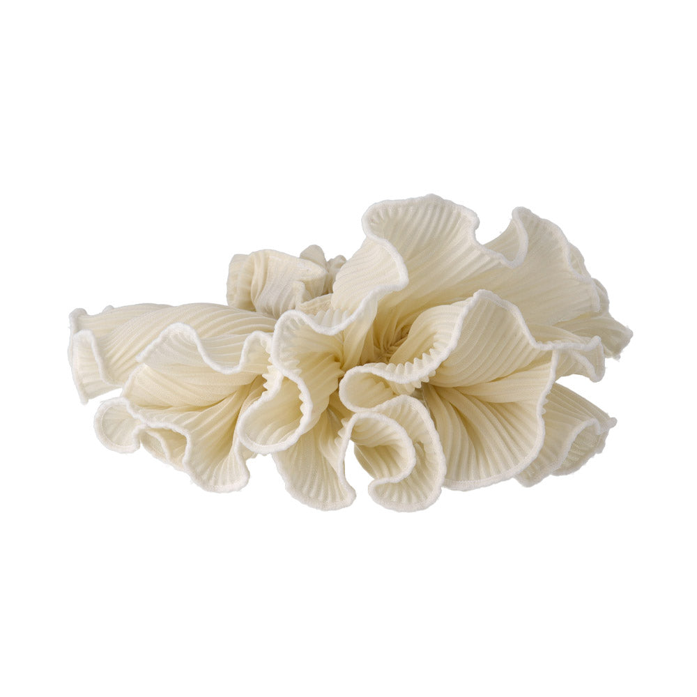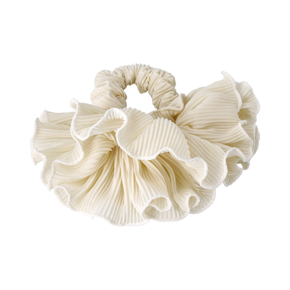 cc0258甘さをひとさじくわえるのにちょうどいい、プリーツフリルシュシュ。今っぽいボリューミーなシルエットでかわいく盛れる。カジュアルからキレイめまで幅広いコーデと好相性。ベーシックカラーで使い勝手◎
