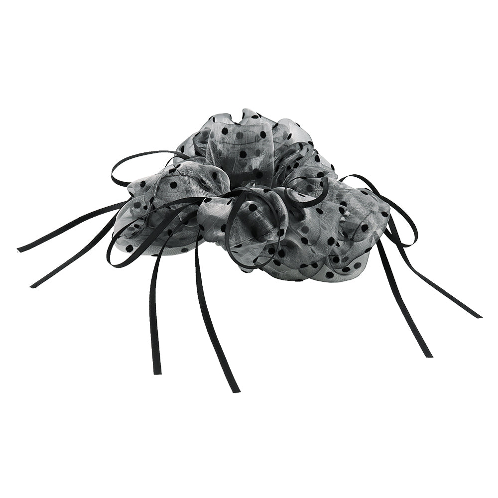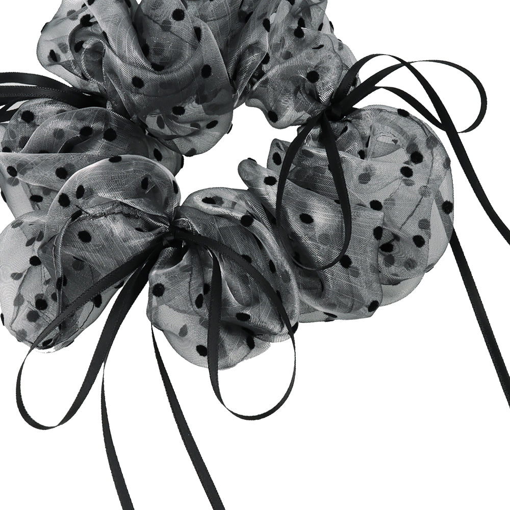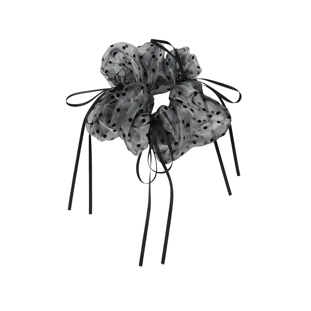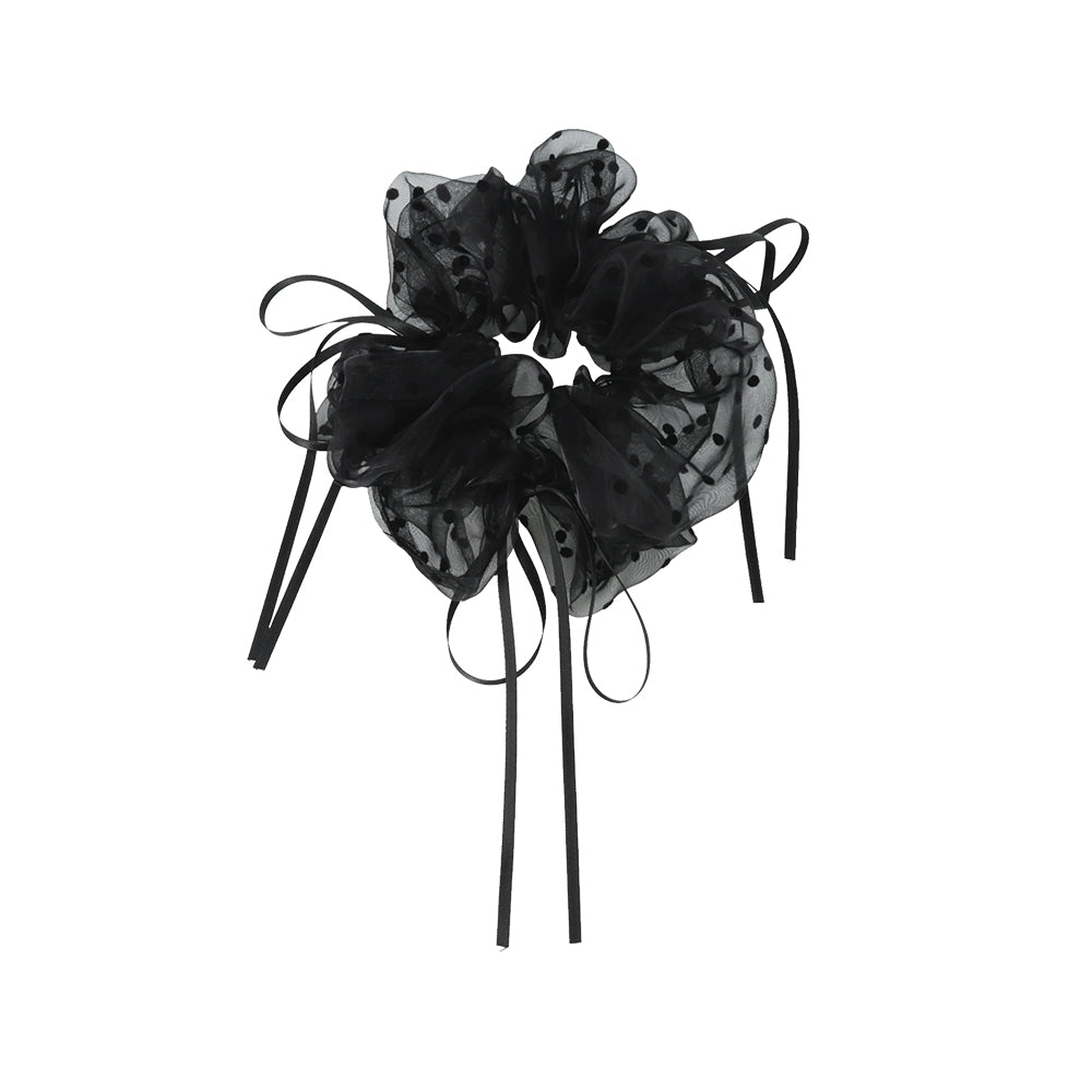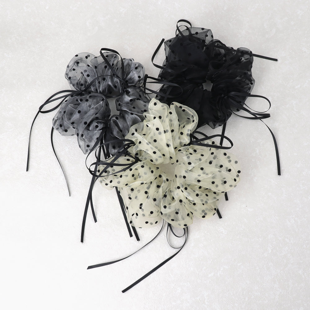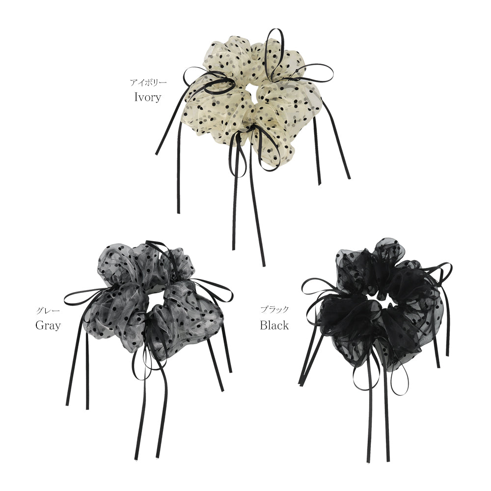 シュシュ シアー ドット 柄 ナロー リボン モノトーンカラー