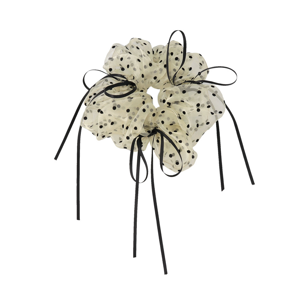 cc0306映え度抜群ビッグシュシュ。キュートなドット柄デザイン。後ろ姿もぬかりなく、どこから見てもかわいいリボンアイテムをプラスして品よく甘いコーディネートに。ときめく小物使いでかわいく、盛れてこなれ度もUP。手首につけても◎推し活コーデにも◎