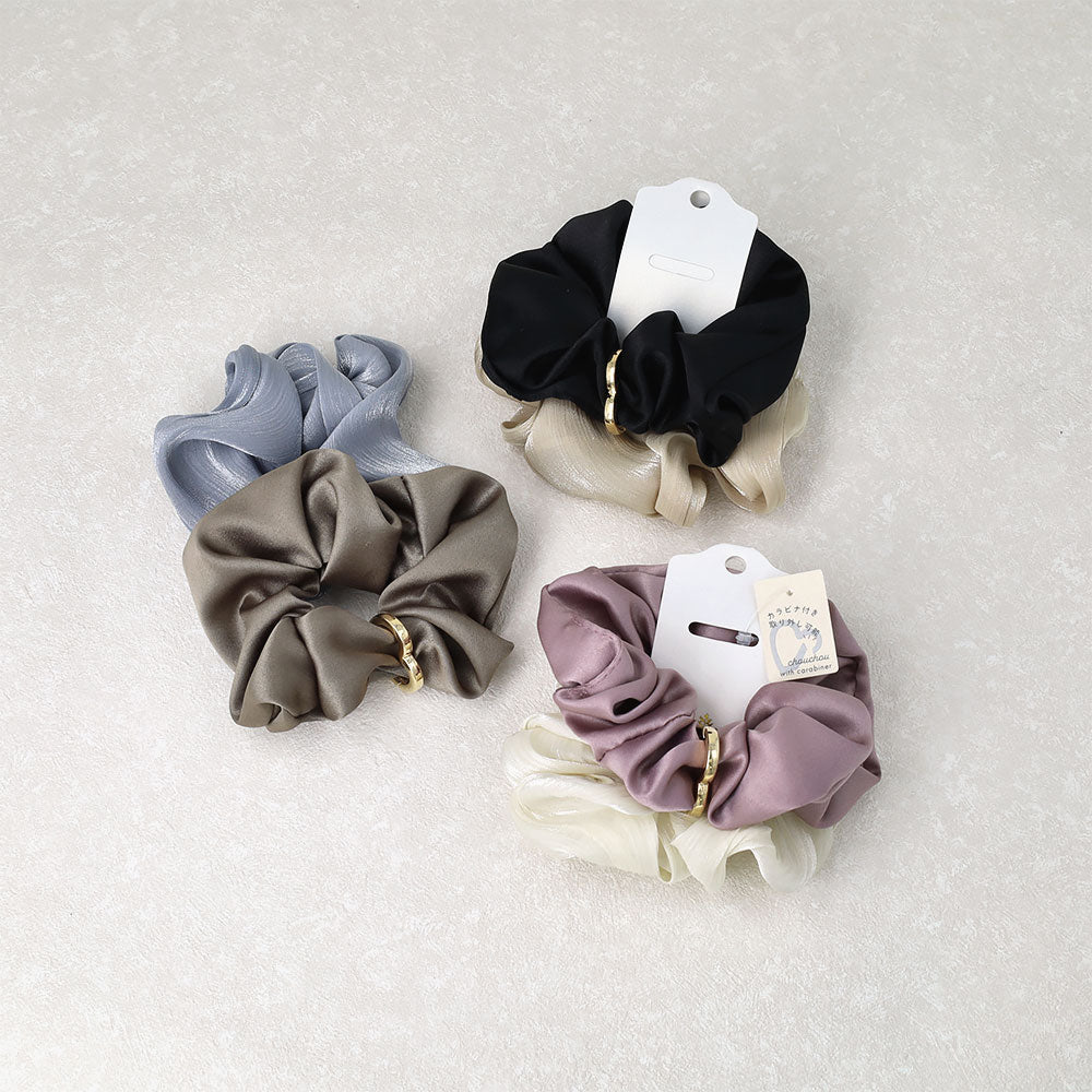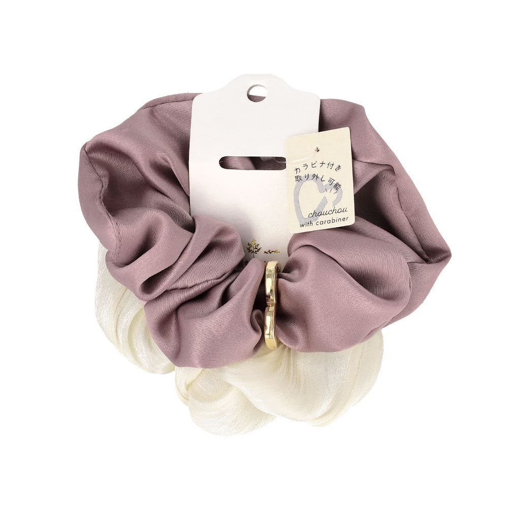 シュシュ バイカラー シマー 2個セット メタル ハート カラビナ付き