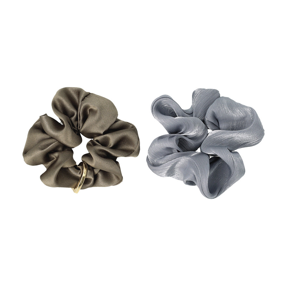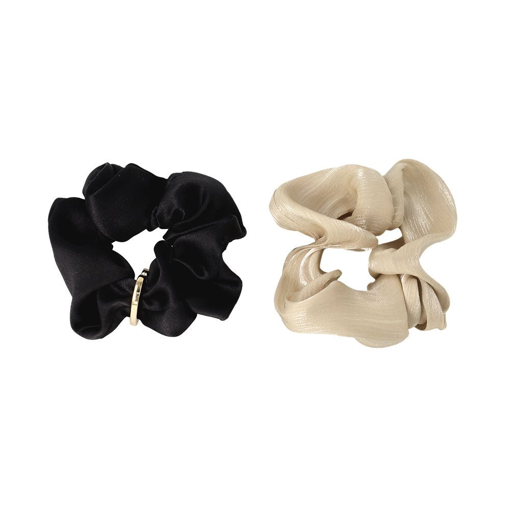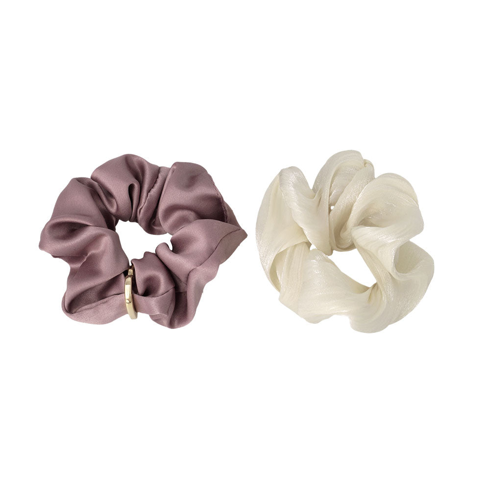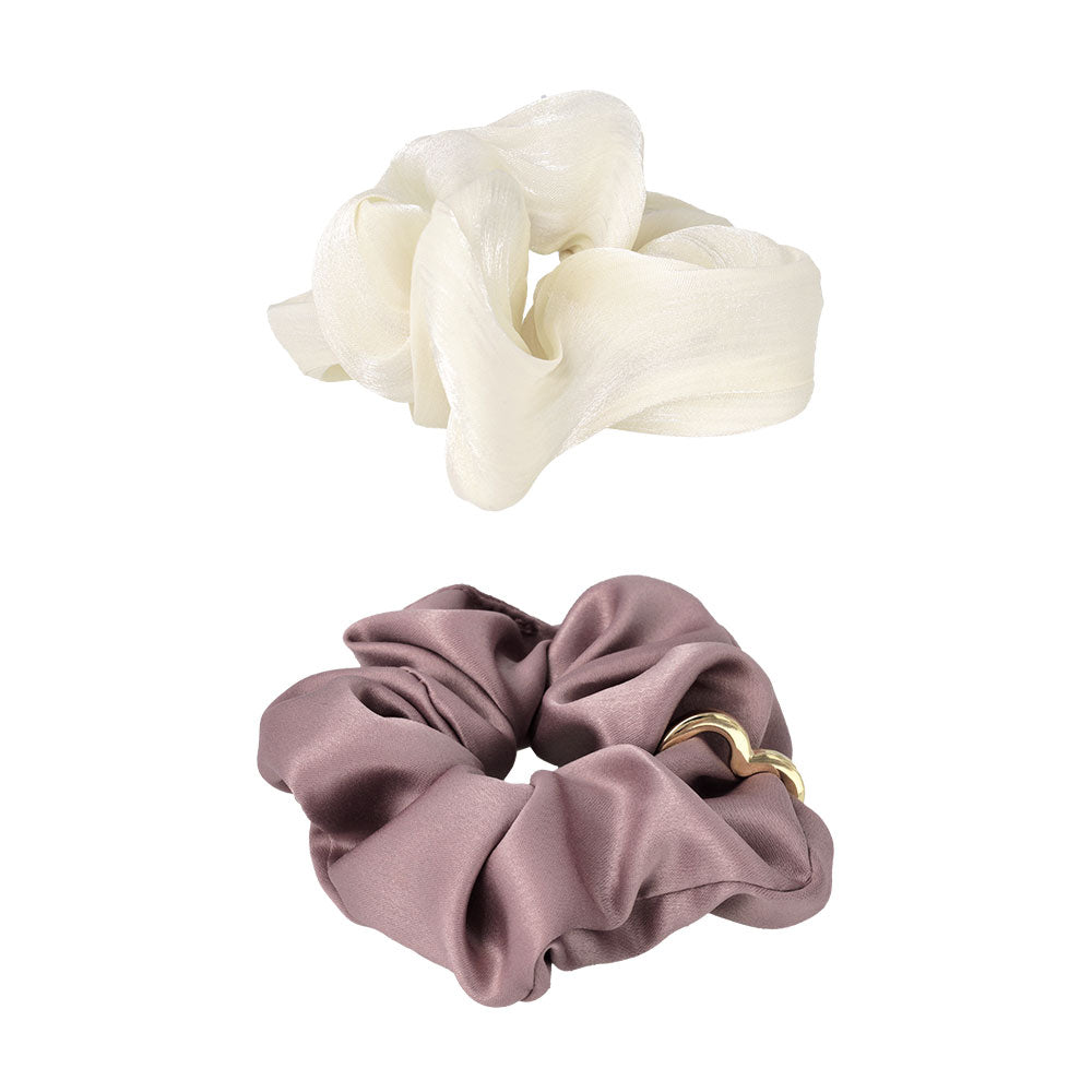 cc0312ハートのデザインリングをアクセントにしたシュシュ。アレンジが楽しめる2色セット。単品でもセットでも使えるのも嬉しいポイント。お出かけにも、お家でも、とっさのまとめ髪や気分をリフレッシュしたい時に◎小さめサイズで親子で兼用も◎