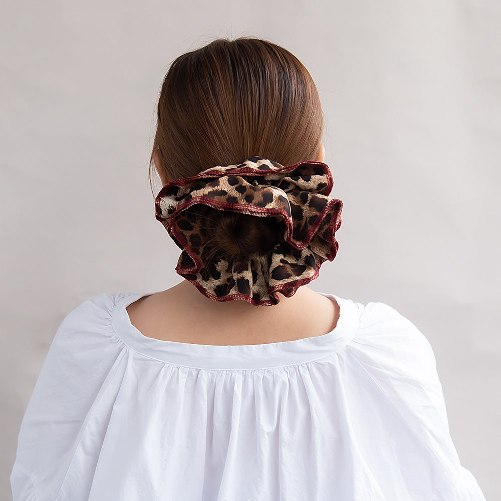 シュシュ レオパード 柄 フリル ボリューム