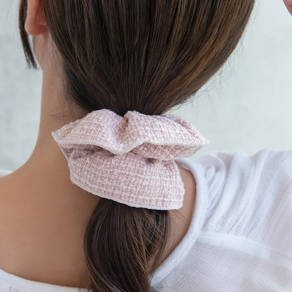 cc0323大人の品の良さが漂うツイード風シュシュ。プラスワンで可愛さもおしゃれ度もアップ。あたたかみのあるツイード調素材を取り入れて、ヘアアレンジも秋冬モードへ。差し色使いにも◎