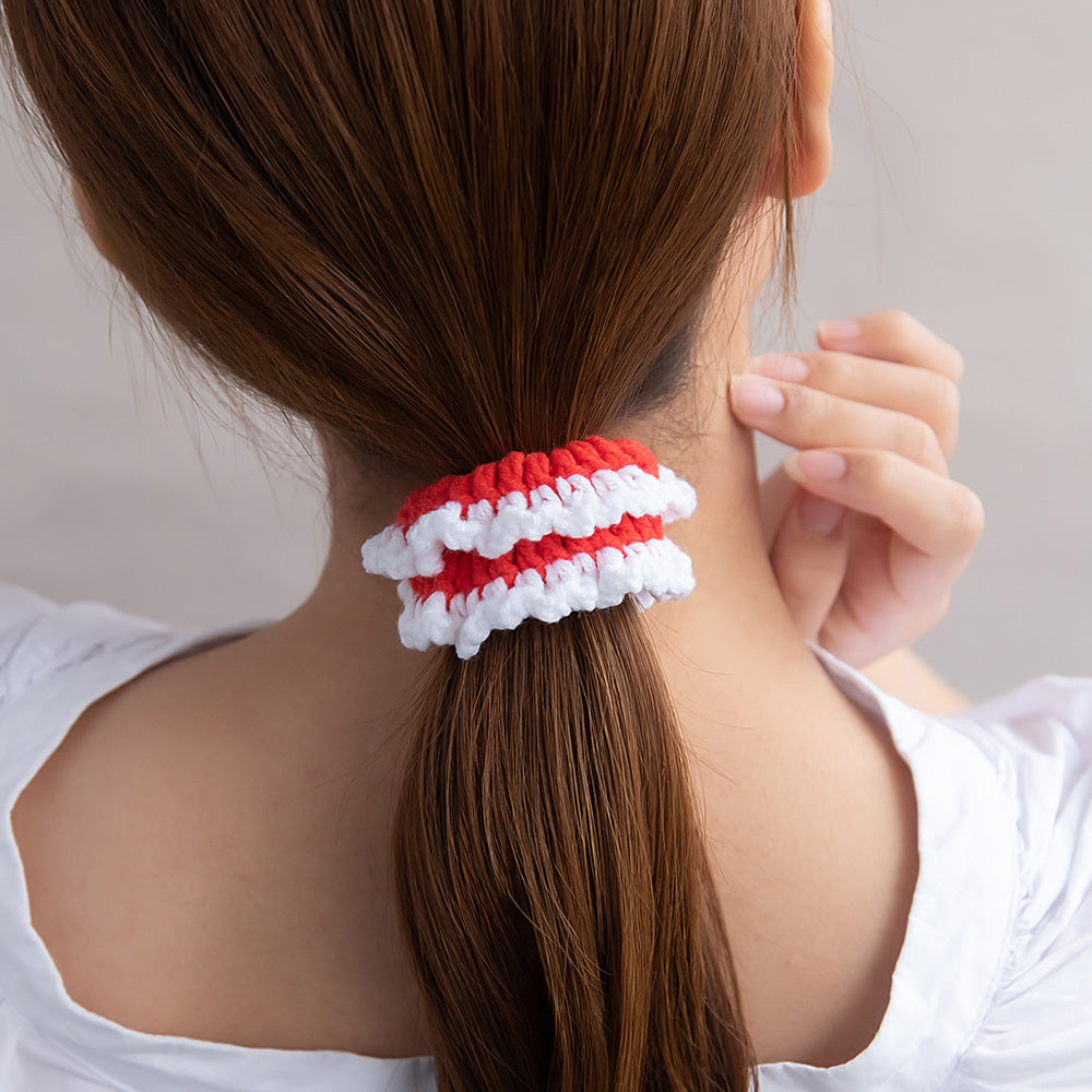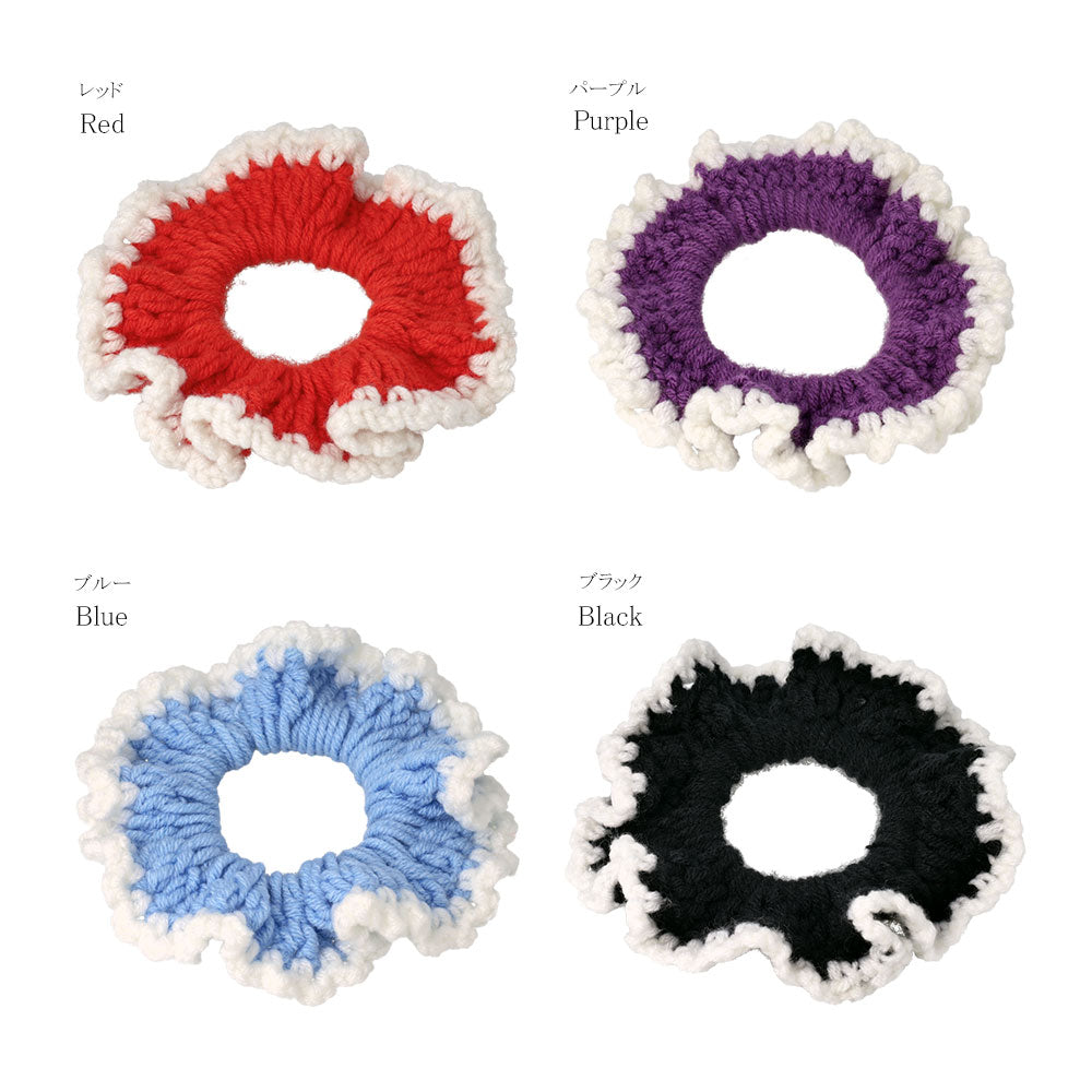cc0331パッと目を引く鮮やかなカラーのシュシュ。シーズンムードを高めてくれる温かみのある毛糸素材。