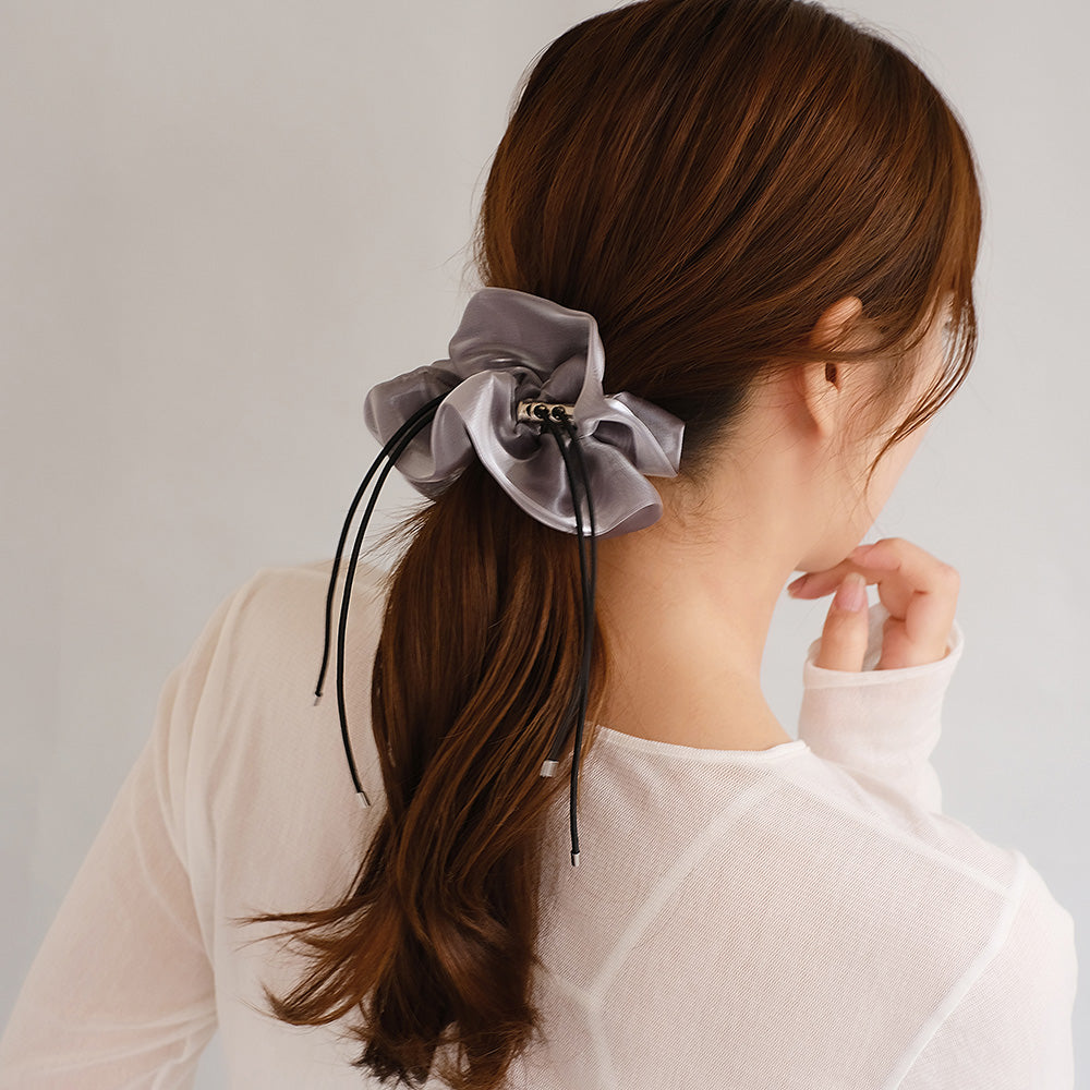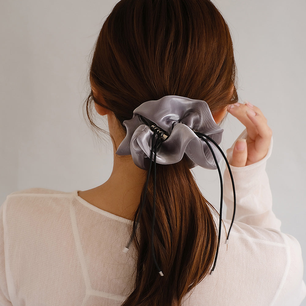 毛量を気にせず絞るだけでスタイルが決まる、紐を引いてサイズ調整が出来る万能シュシュ