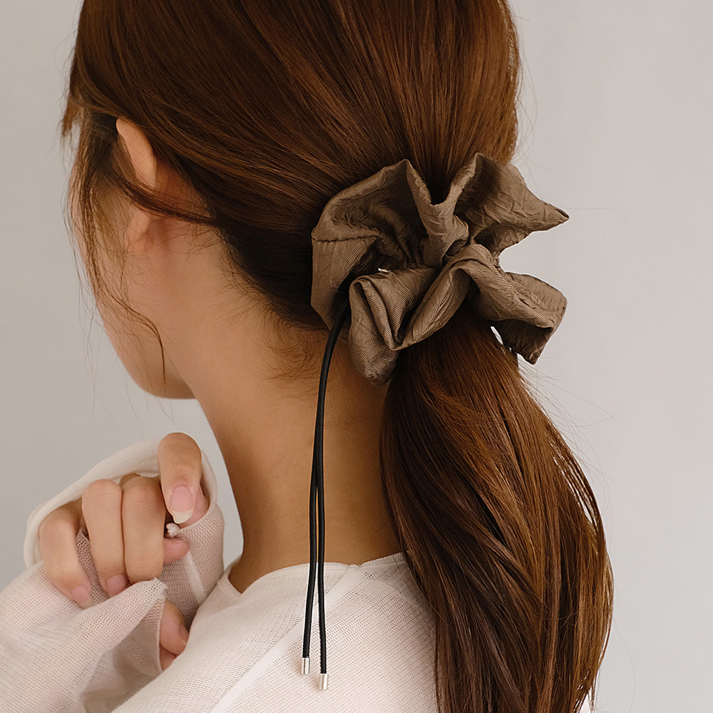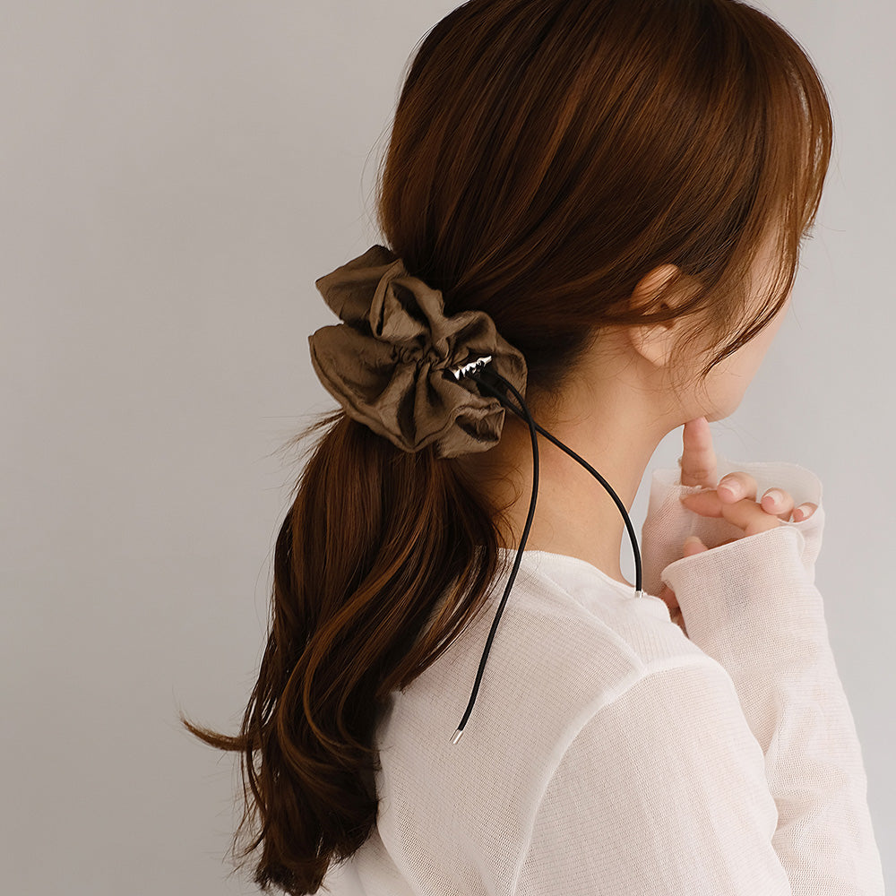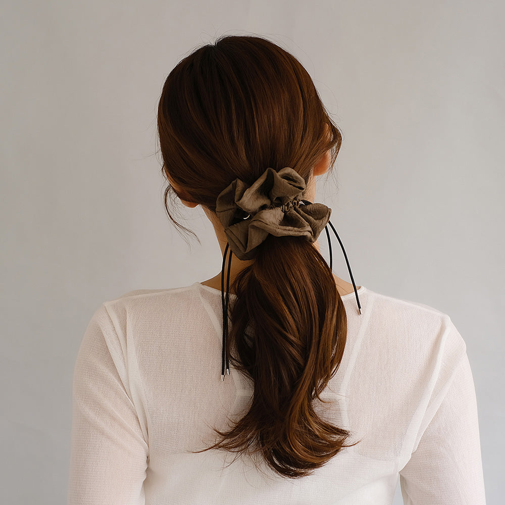 毛量を気にせず絞るだけでスタイルが決まる、紐を引いてサイズ調整が出来る万能シュシュ