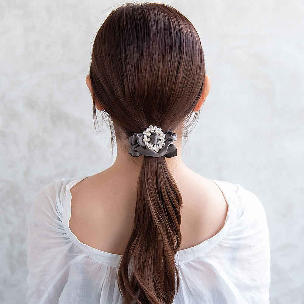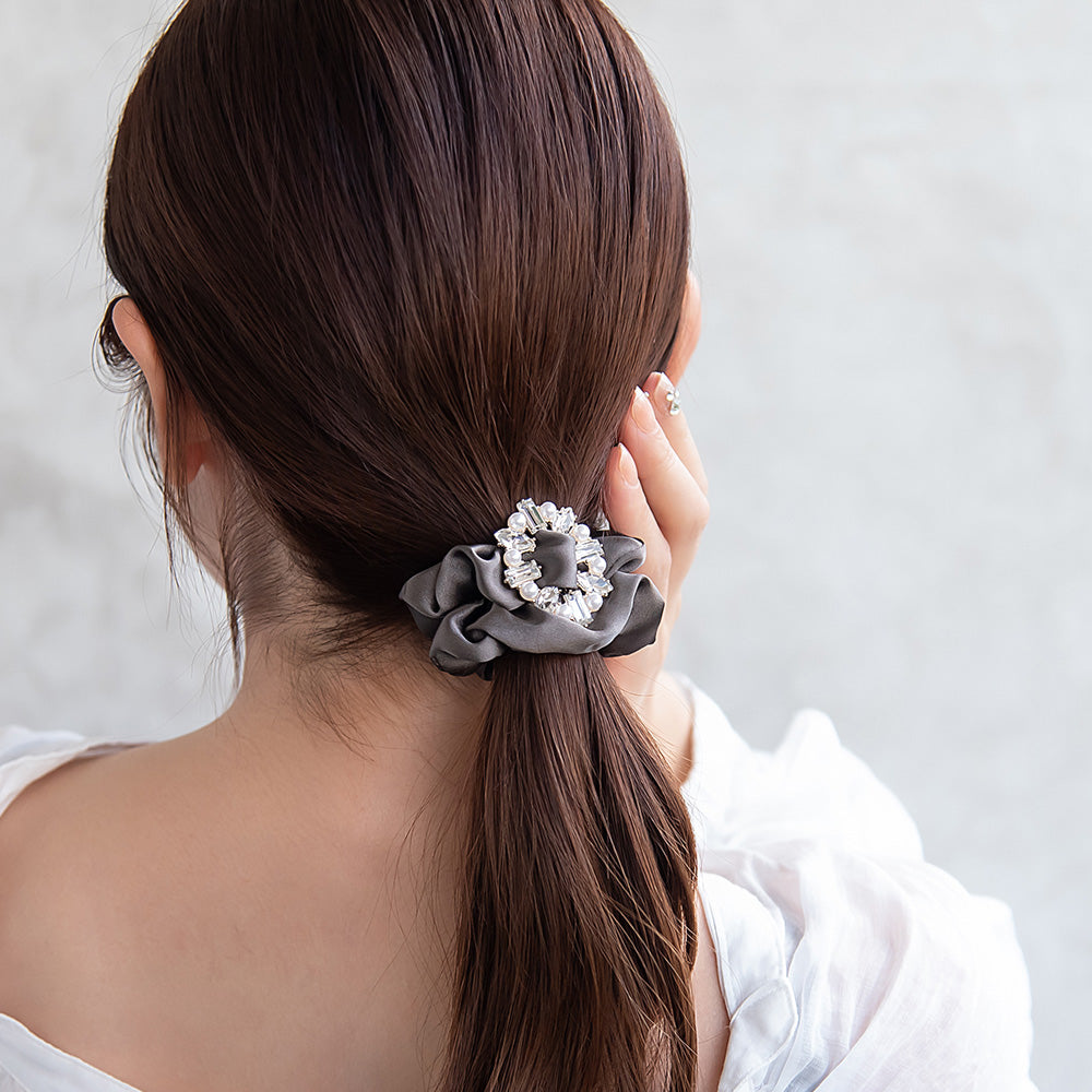 時短で可愛く、おしゃれ見え。ぱっと華やぐ、映えチャームつきシュシュ。