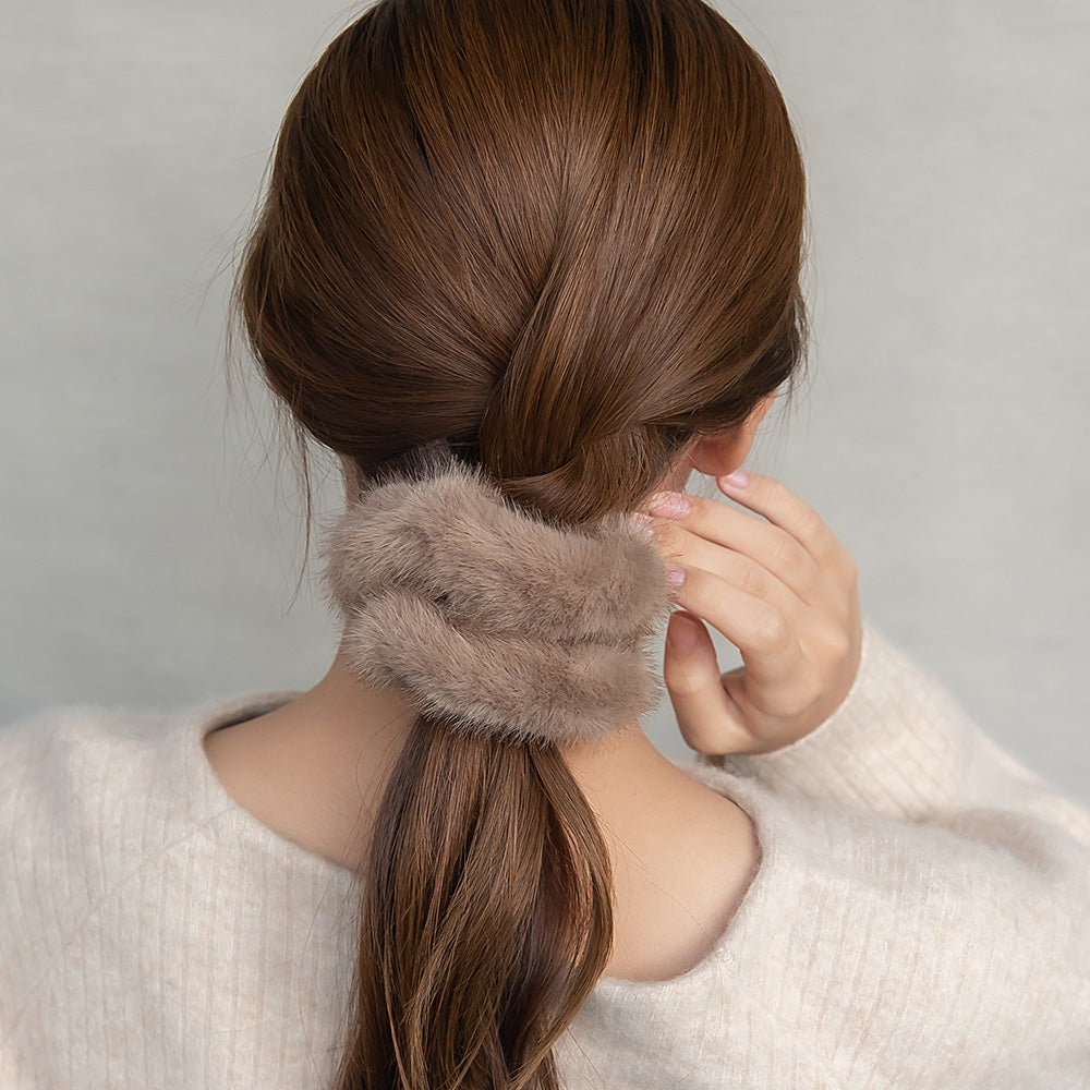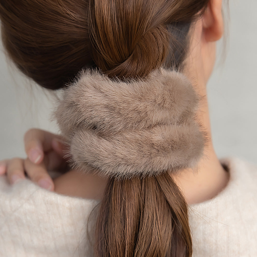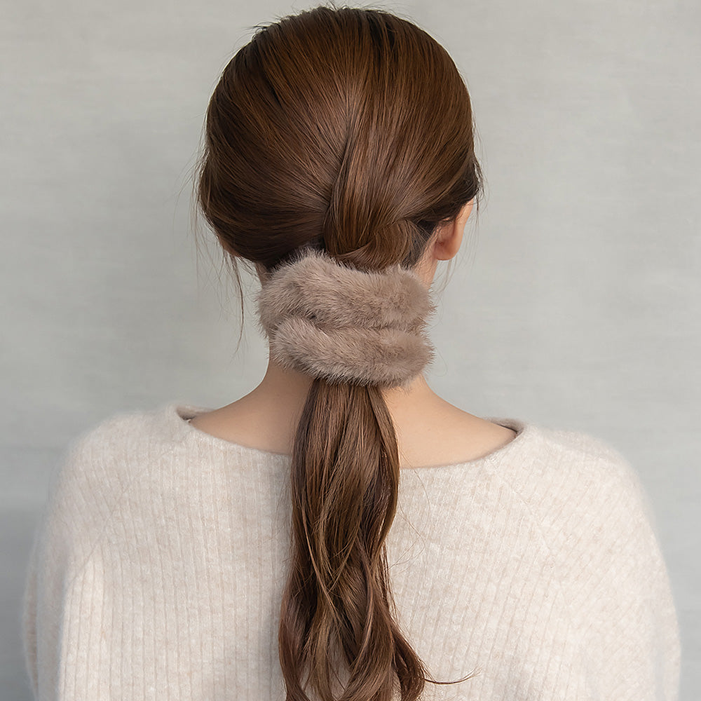 cc0344シーズンムード高まるファー素材のシュシュ。いつものコーディネートが簡単に秋冬仕様に。