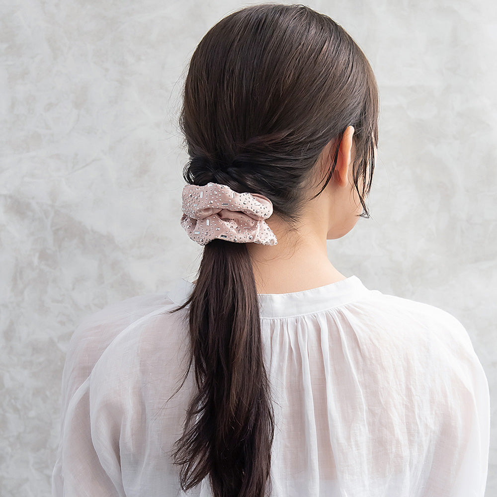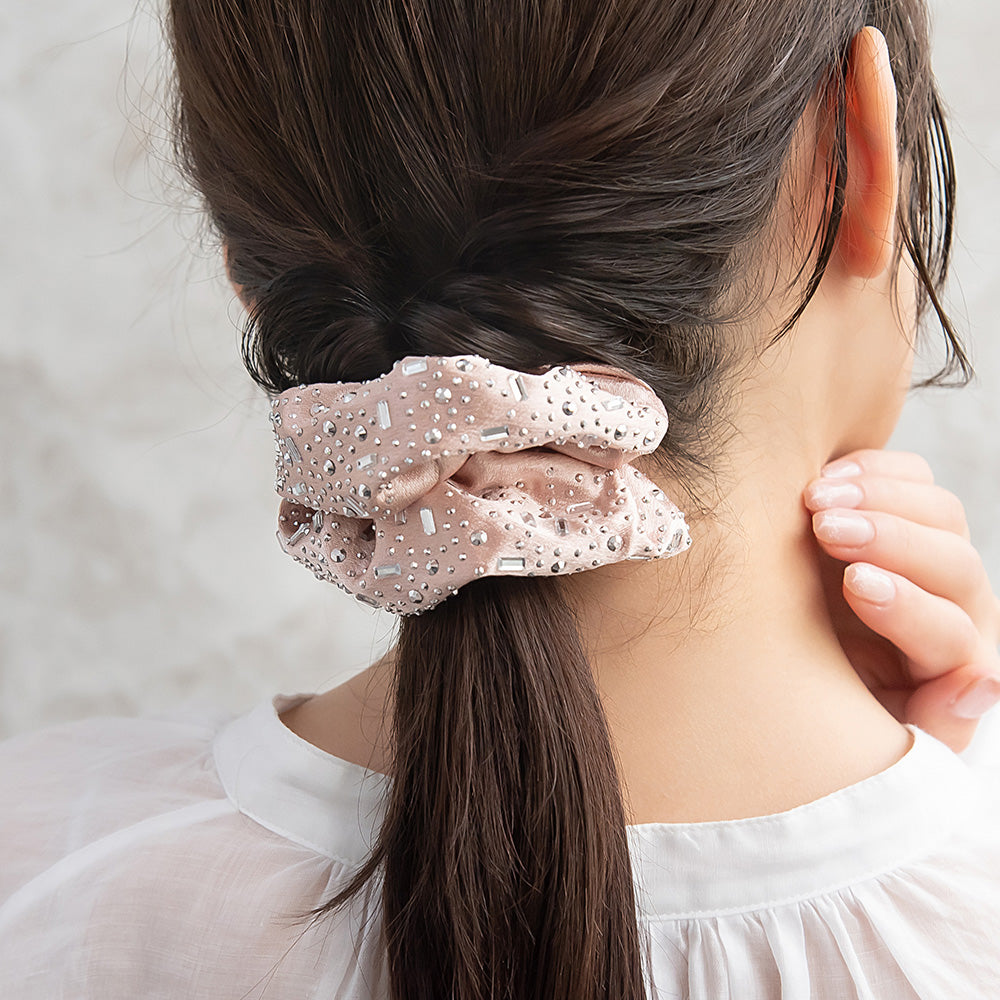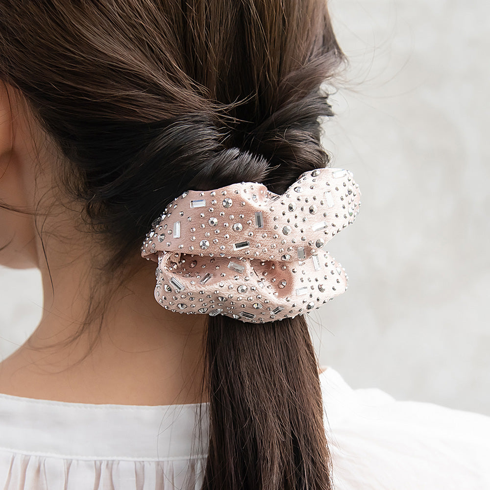 cc0351キラキラストーンをふんだんに散りばめた煌びやかなサテンシュシュ。