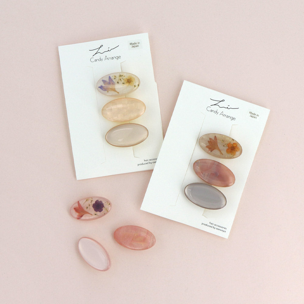 ヘアクリップ Candy Arrange オーバル ドライフラワー 封入 マーブル カラー 3個セット ミニ クリップ