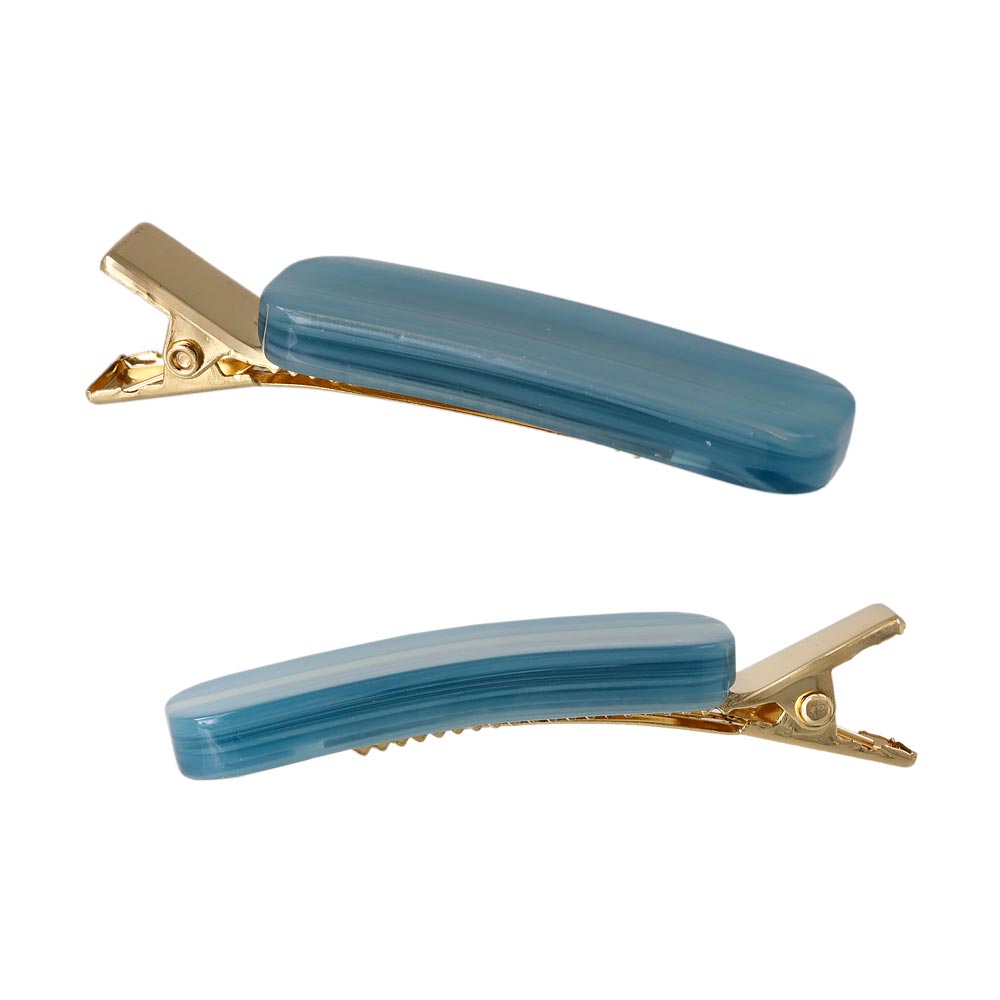 ヘアクリップ Candy Arrange ニッケルフリー レクタングル ライン マーブル カラー 2個セット メタル クリップ