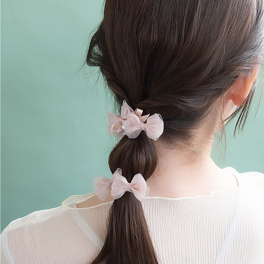 ヘアクリップ シアー レイヤード ダブル ミニ リボン パール 2個セット クリップ