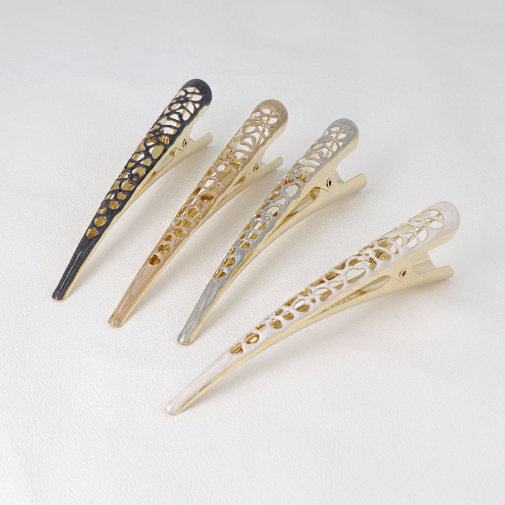 ヘアクリップ 透かし フラワー マーブル カラー メタル コンコルド くちばしクリップ