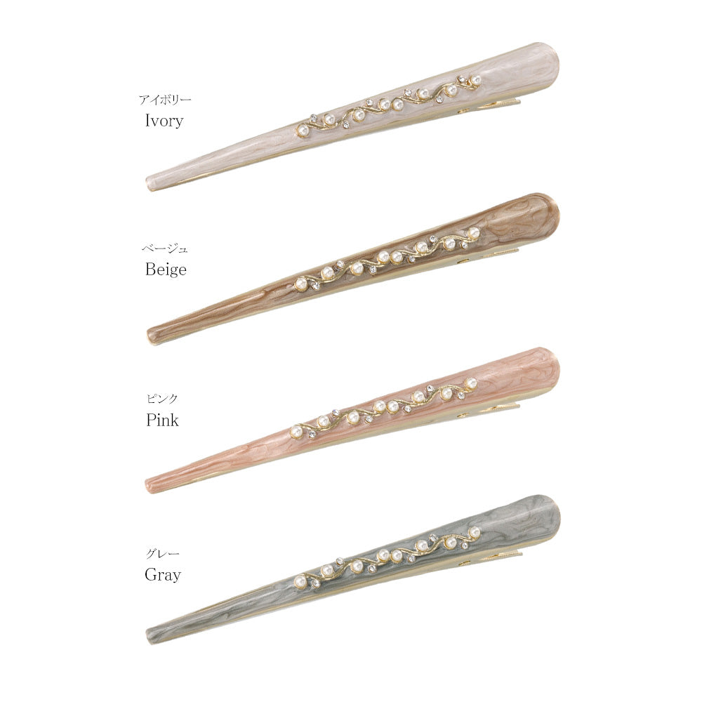 ヘアクリップ ウェーブ ライン ミニ パール ストーン マーブル カラー メタル コンコルド くちばしクリップ